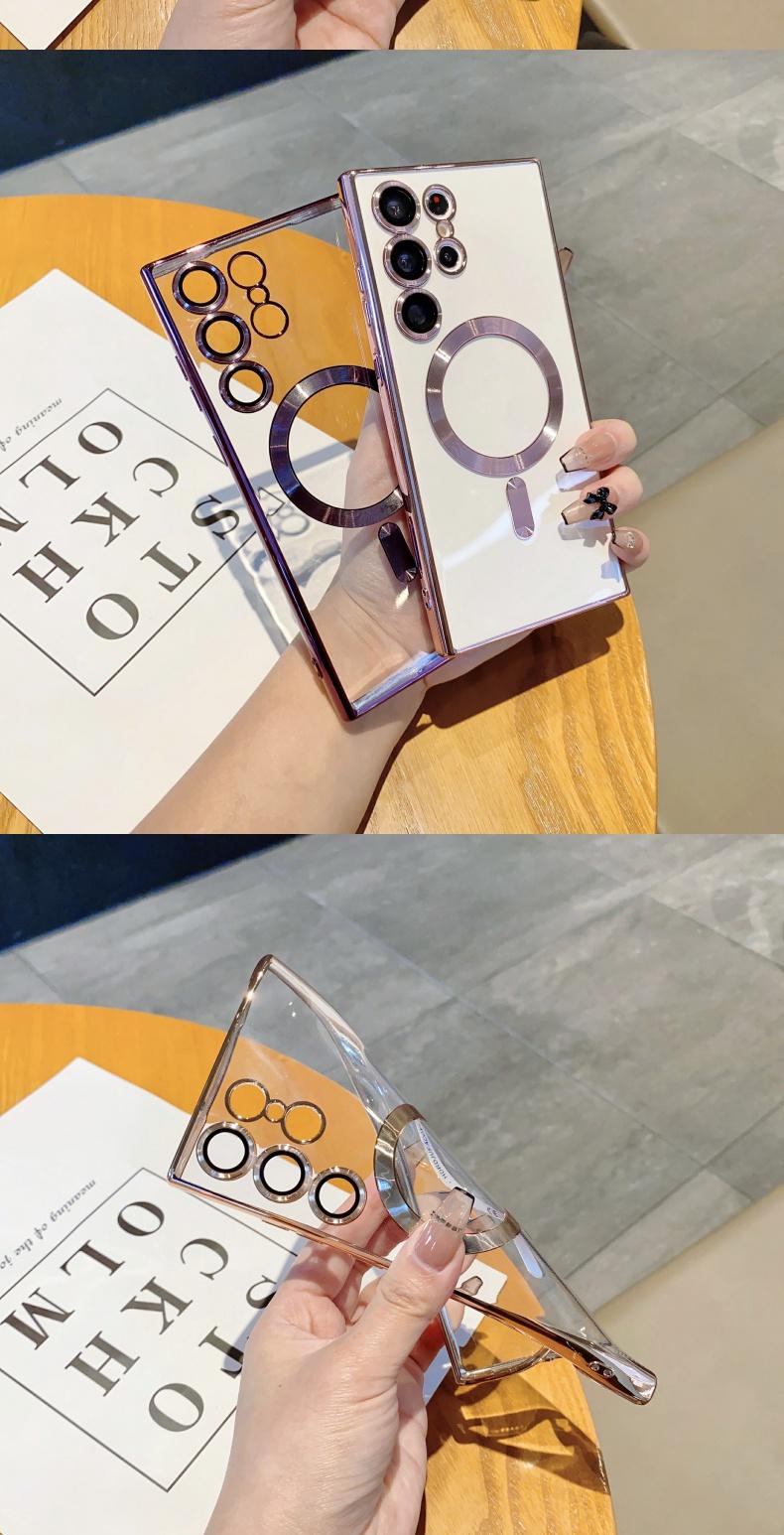 適用三星s23Ultra手機殼電鍍透明磁吸s22ultra新款超薄高級感原裝保護套s21uitra自帶鏡頭膜s23+全包22+防摔