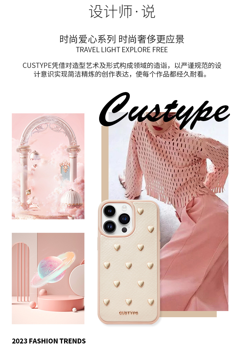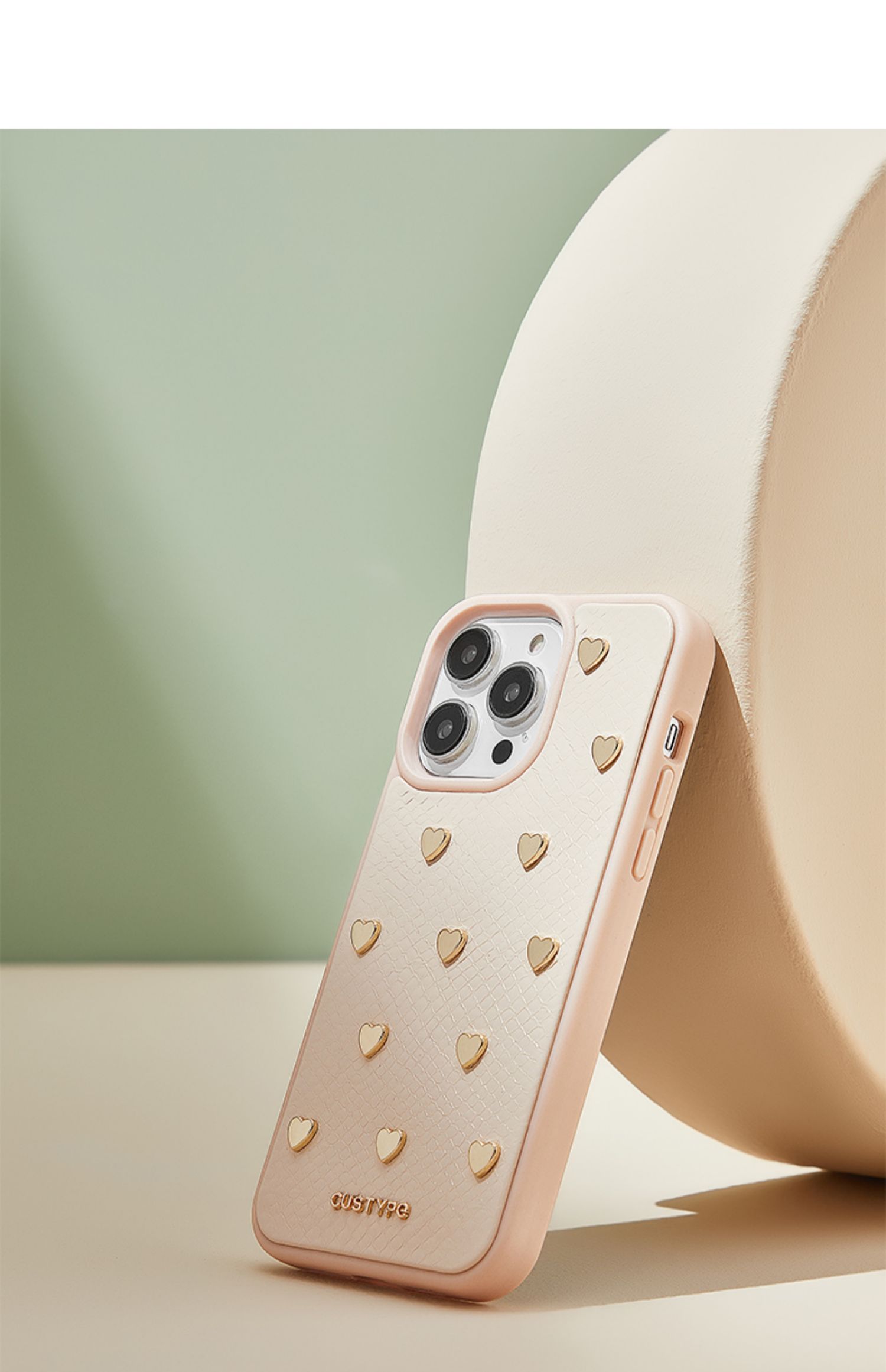 CUSTYPE 適用于蘋果15promax女新款網紅高級iPhone14頭層牛皮真皮愛心打釘時尚潮流爆款防摔13電話保護套
