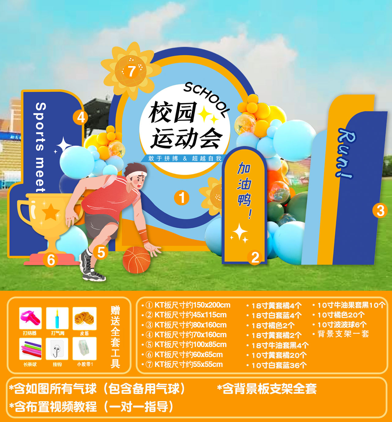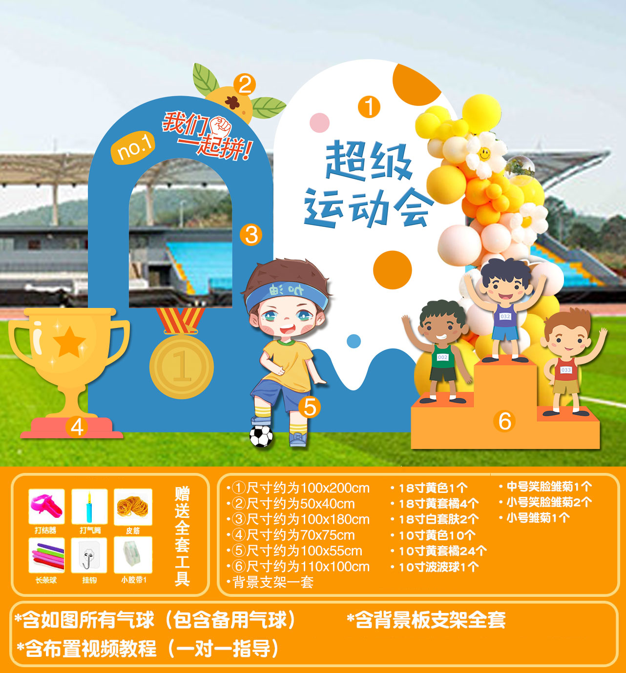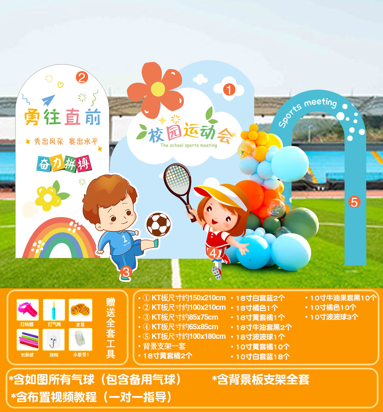 學校幼兒園春秋季運動會裝飾背景墻kt展板場景布置親子活動氣球