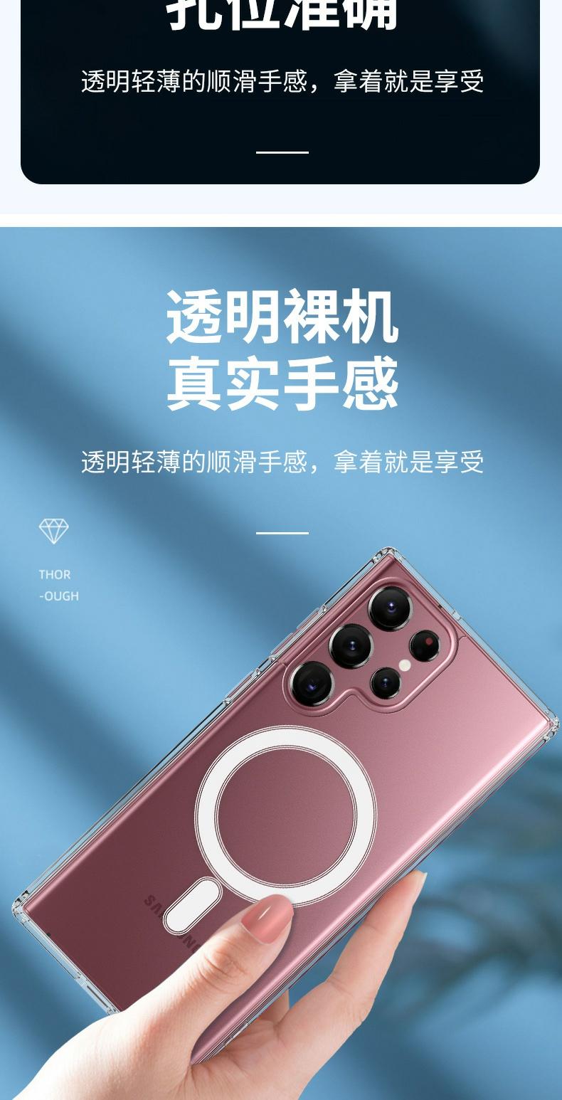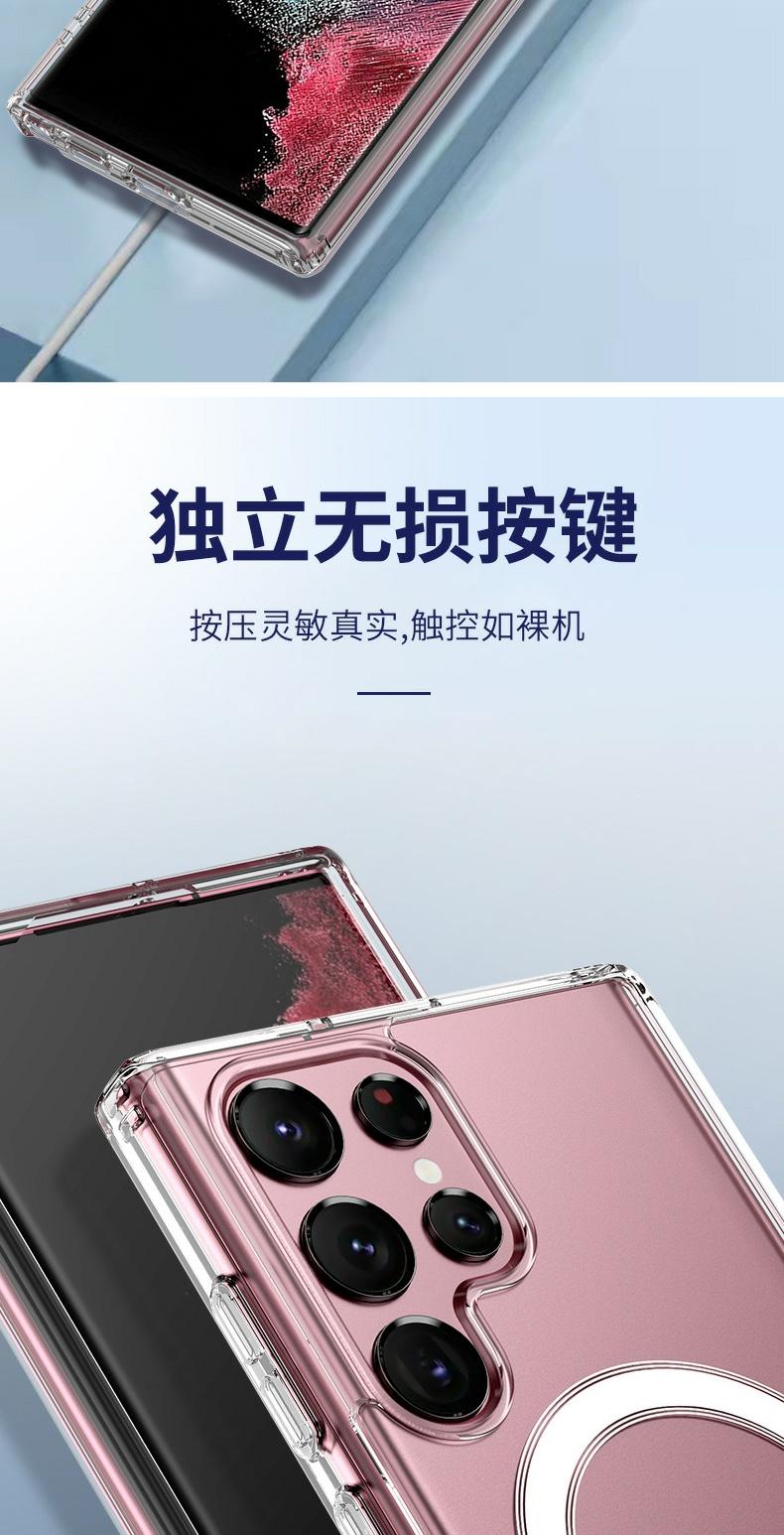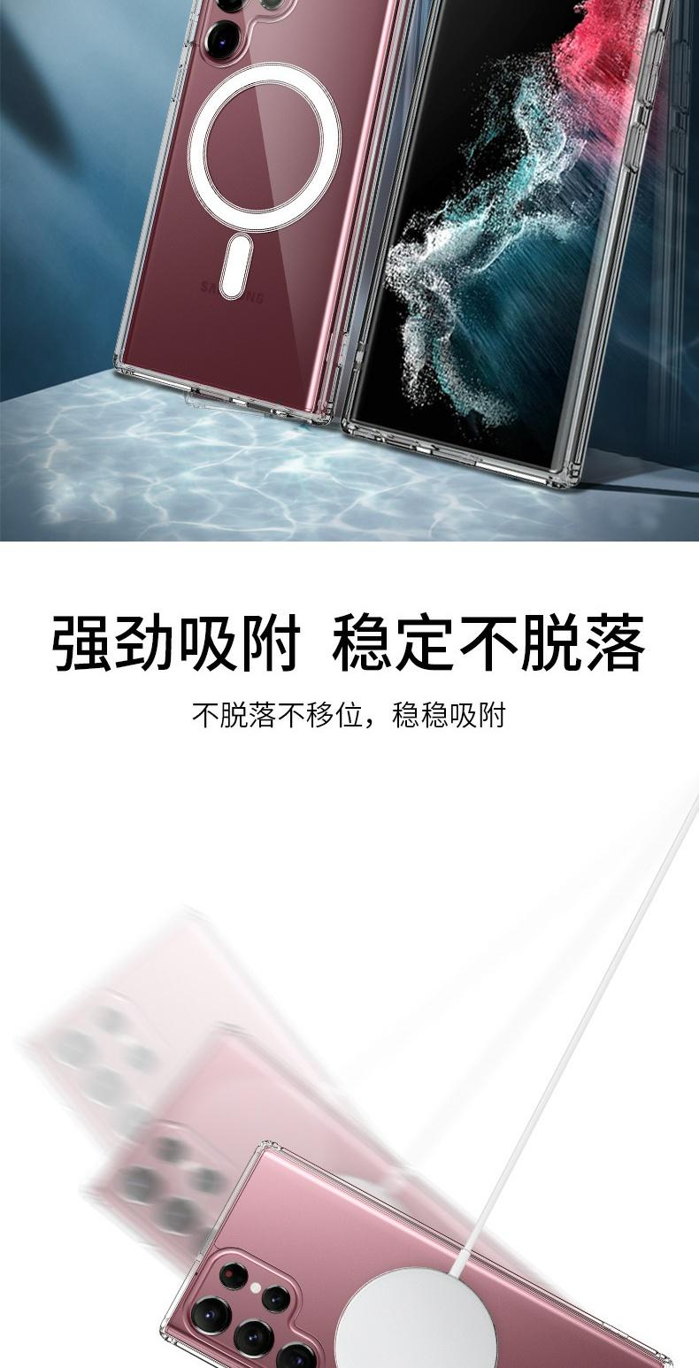 三星s23ultraMagsafe磁吸手機殼透明s22ultra超薄氣囊防摔s21u新款保護套全包原裝s22高級感s23+高端男女適用