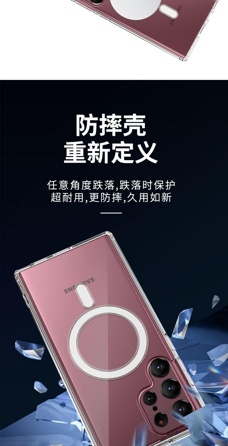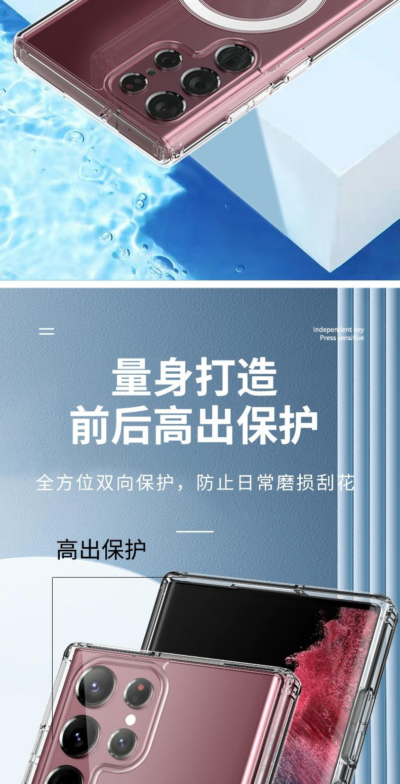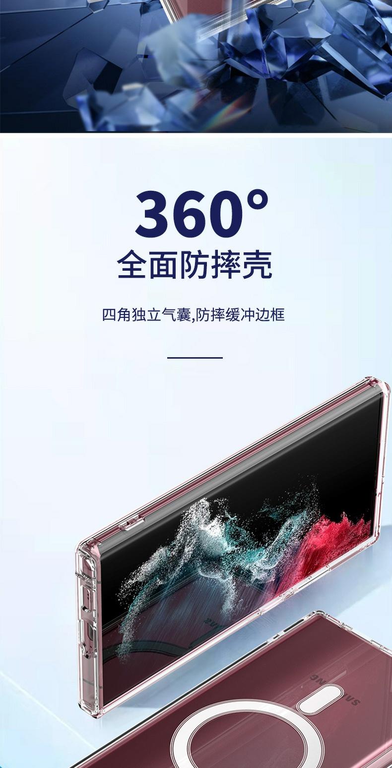 三星s23ultraMagsafe磁吸手機殼透明s22ultra超薄氣囊防摔s21u新款保護套全包原裝s22高級感s23+高端男女適用