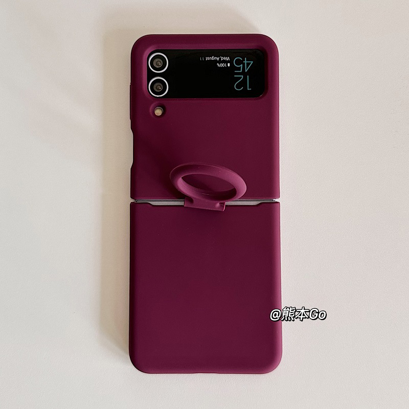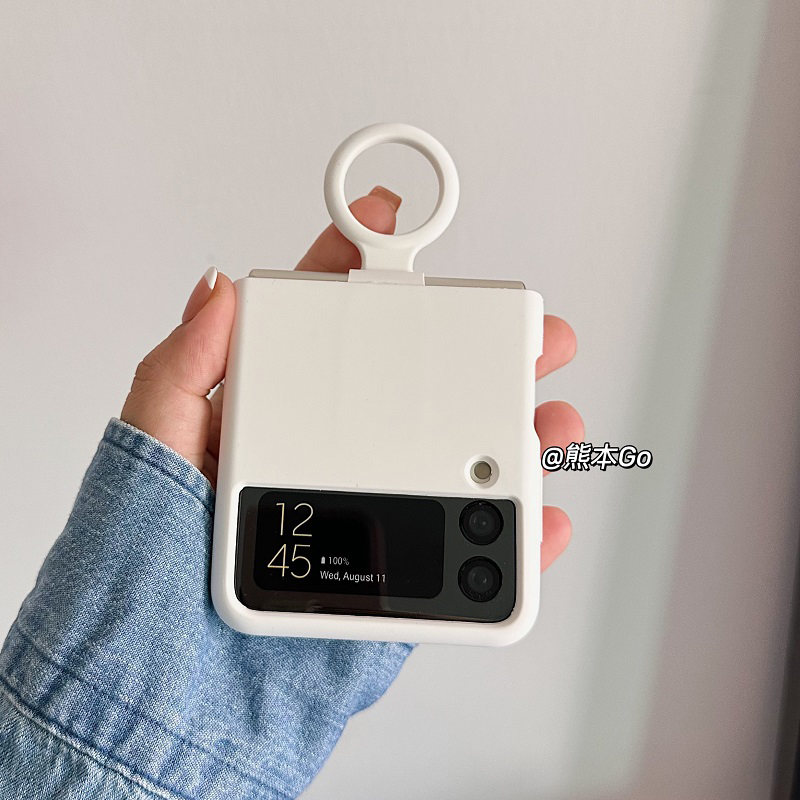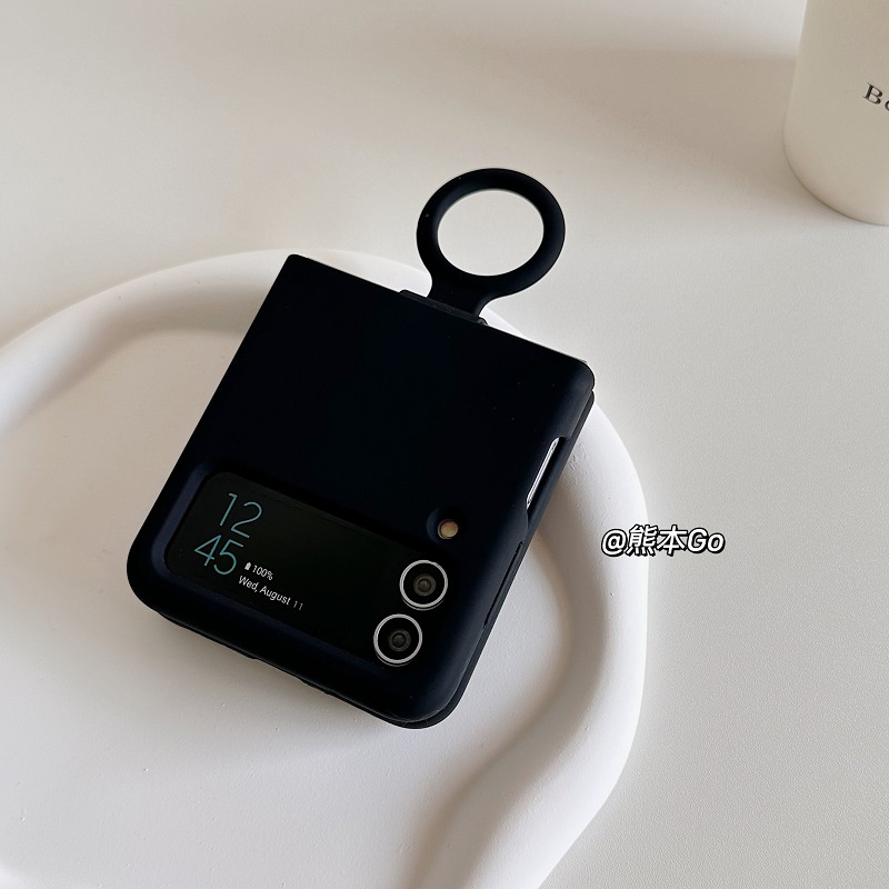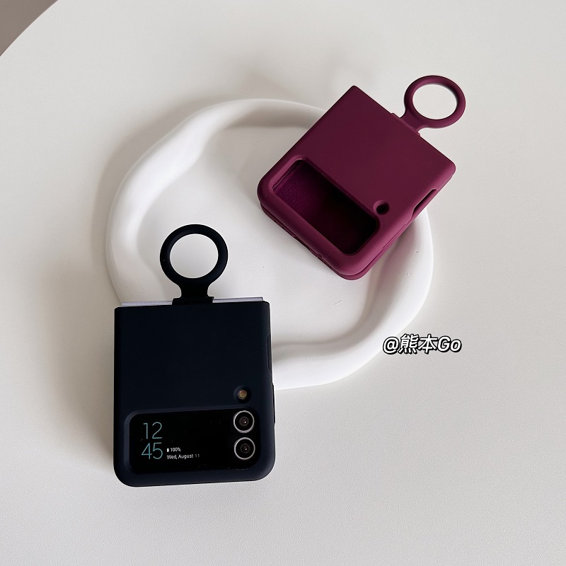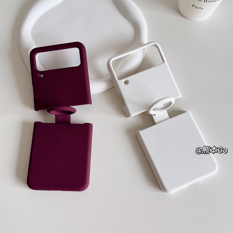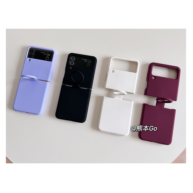 簡約大氣純色適用三星Z FLIP4手機殼z flip3一體指環扣全包液態硅膠殼W23flip折疊軟殼黑白保護套