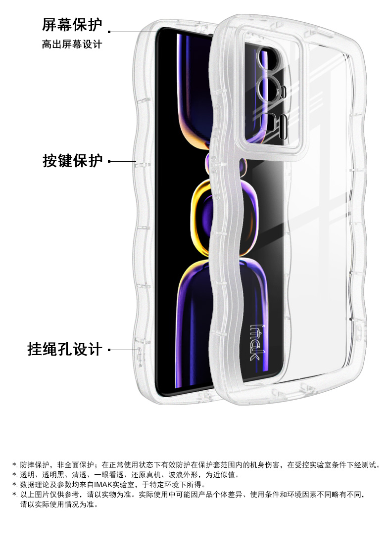 imak適用紅米Redmi K60 5G新款大波浪透明k60pro手機殼k60e全包防摔pocof5pro保護套F5Pro簡約男女硅膠軟外殼