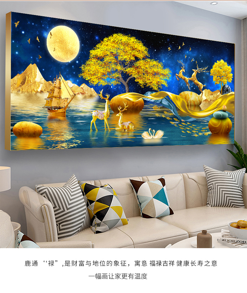 星空麋鹿十字繡2023新款大格滿繡發財樹麋鹿高級感風景棉線絲線