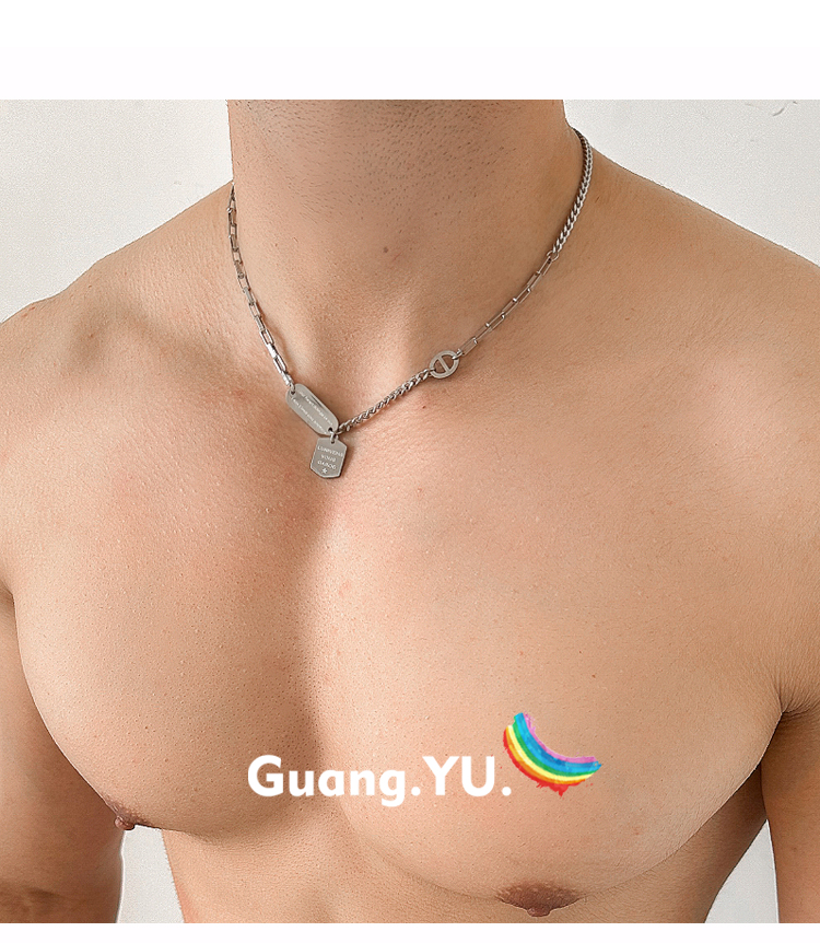 GuangYu彩虹色轉運鈦鋼項鏈男高級感潮流嘻哈個性毛衣鏈小眾配飾