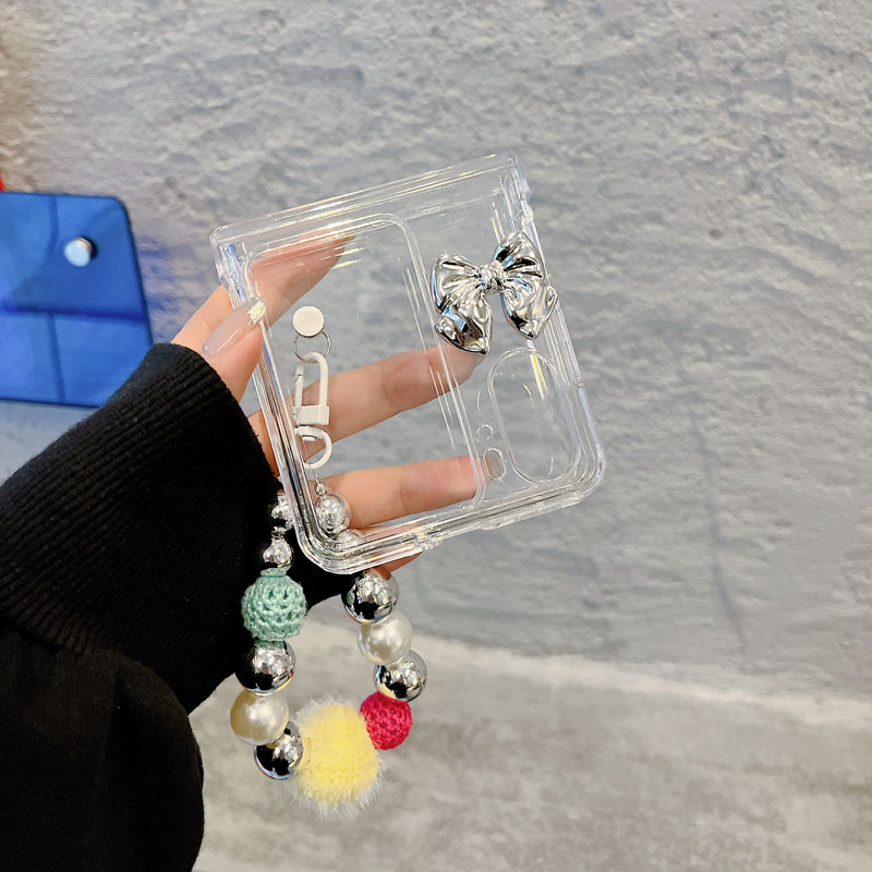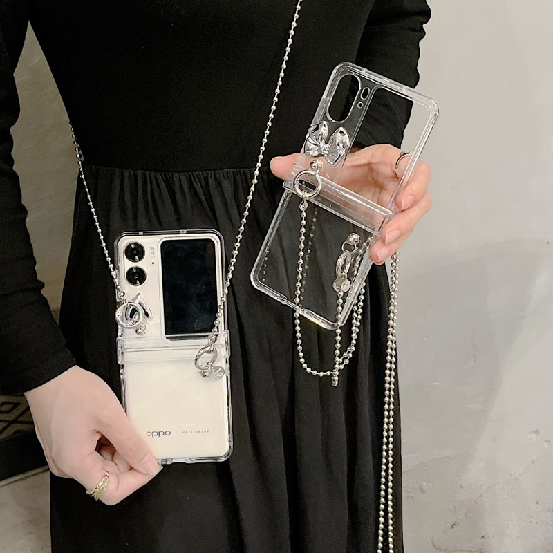 適用oppofindn2flip手機殼純透明INS風立體愛心蝴蝶結鉸鏈全包保護套短鏈手提繩套n3flip折疊硬女小清新3代
