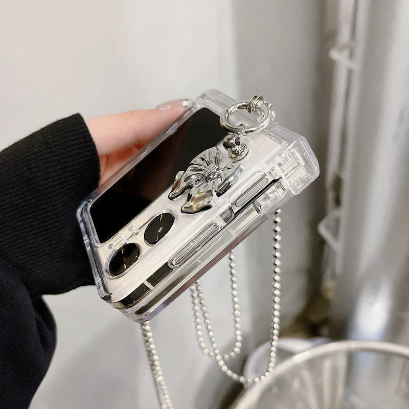 適用oppofindn3flip手機殼可愛簡約純透明ins鉸鏈全包保護套短鏈手提長斜挎繩套find n2flip折疊屏硬鐳射愛心
