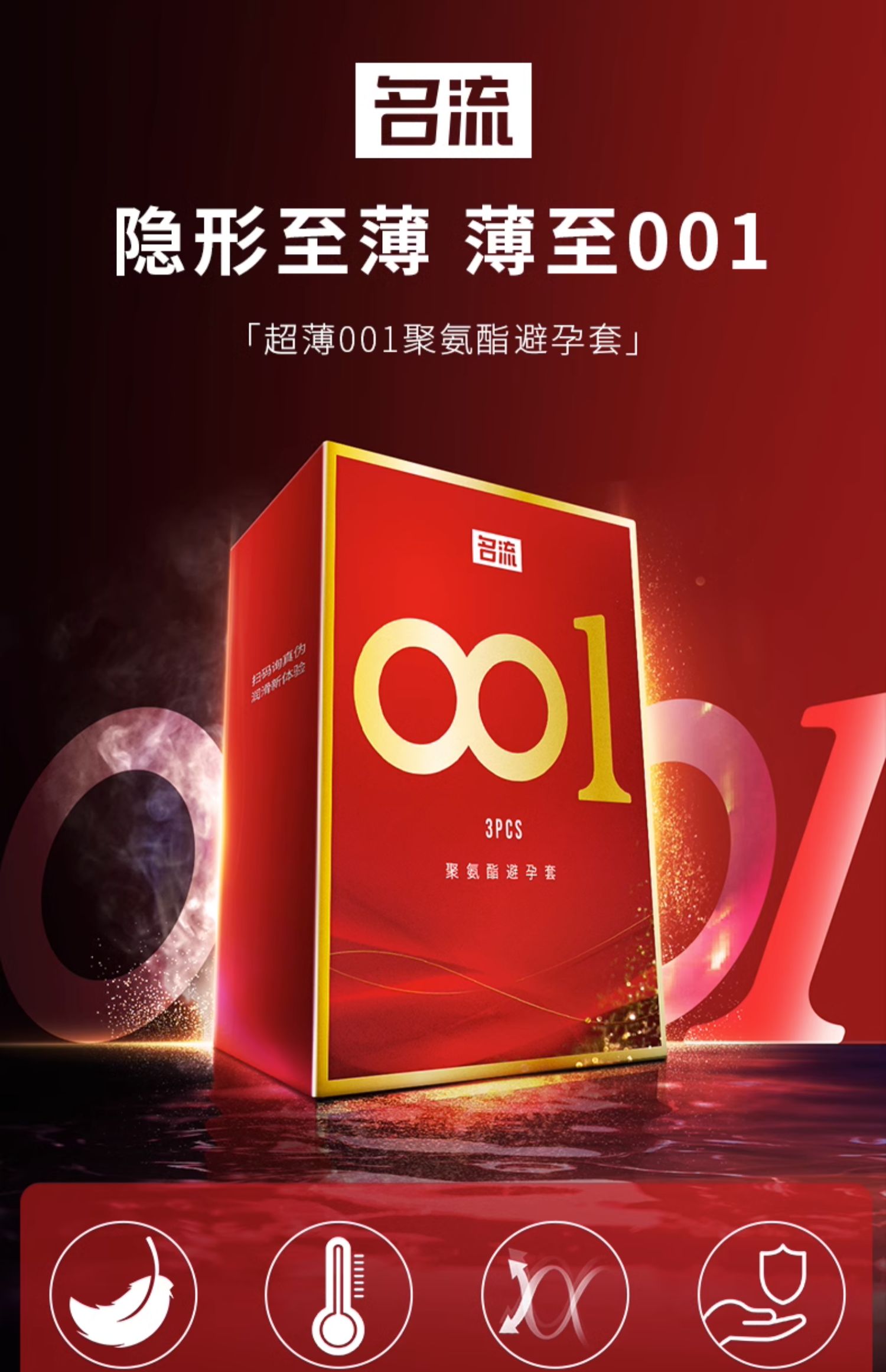 名流 001避孕套官方正品超薄003旗艦店延時持久裝防早泄安全套套