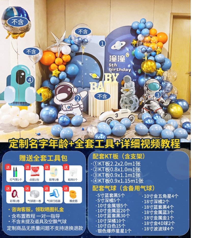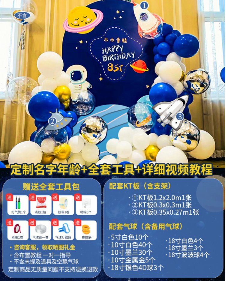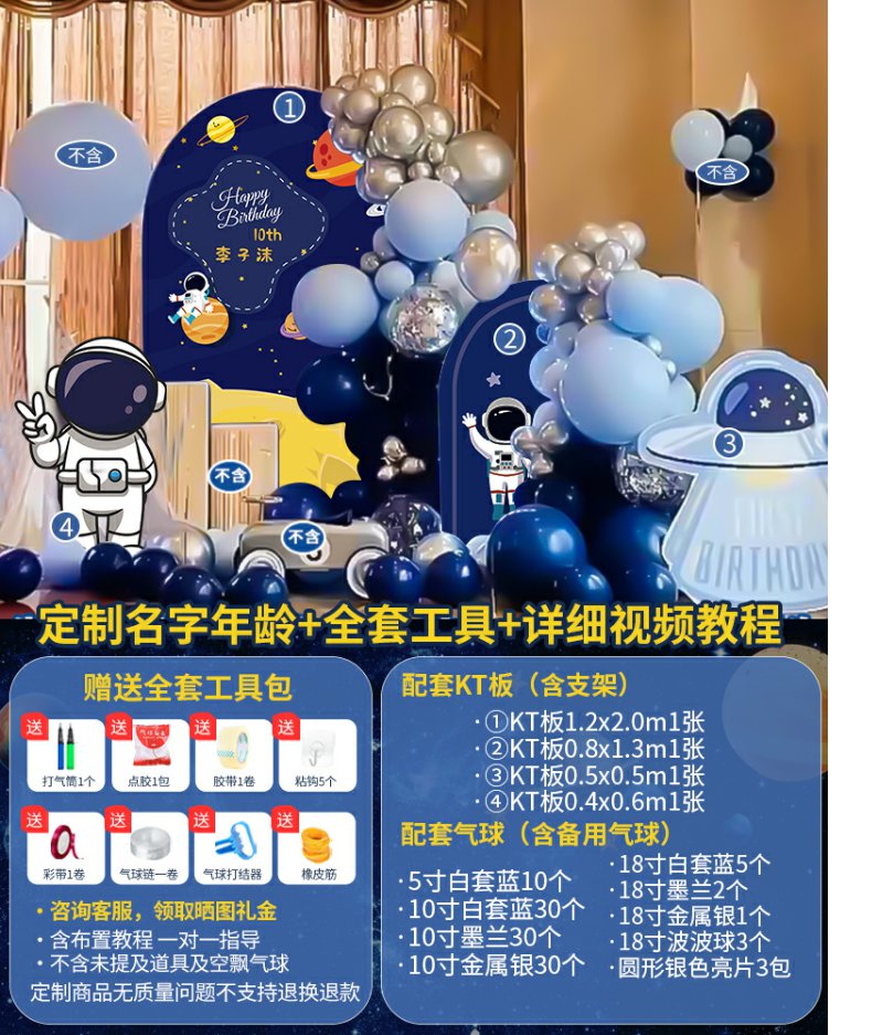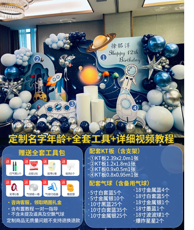 太空人主題派對男孩10周歲生日大型KT背景墻氣球裝飾場景布置套餐