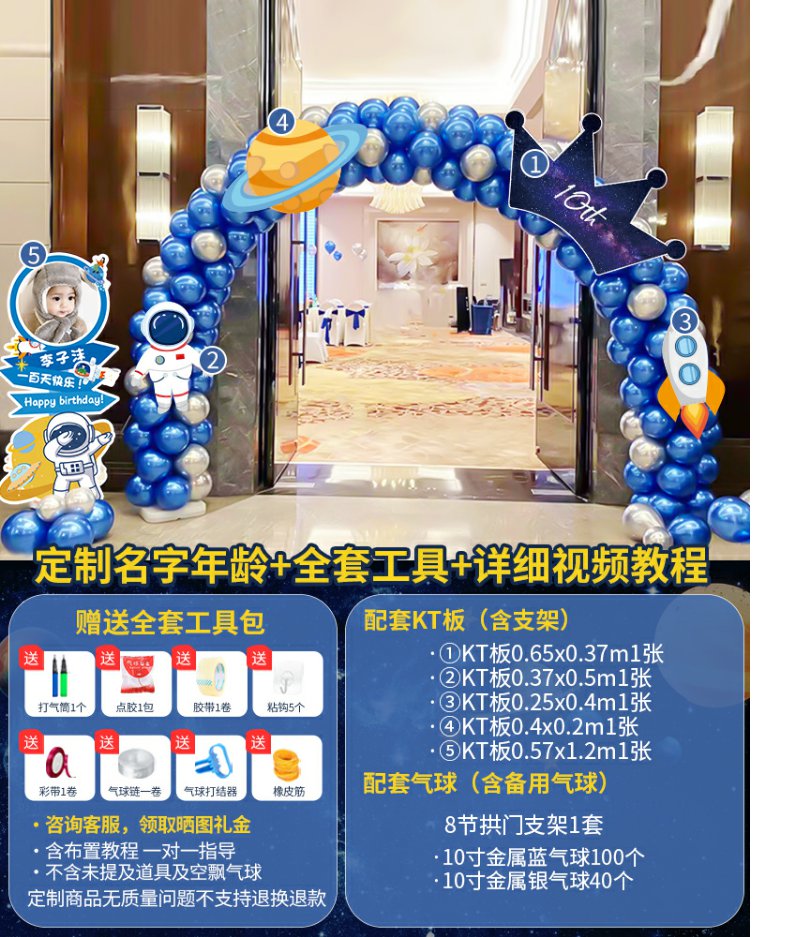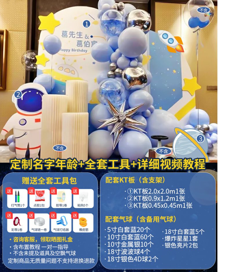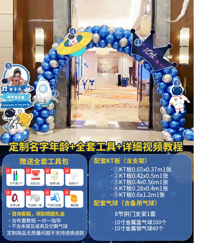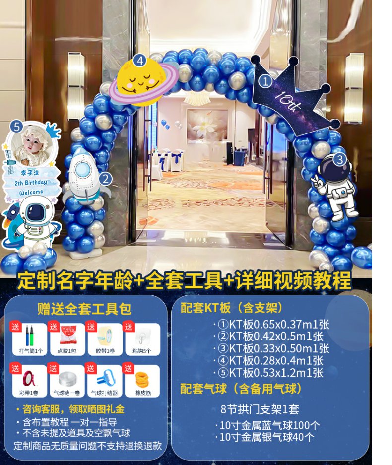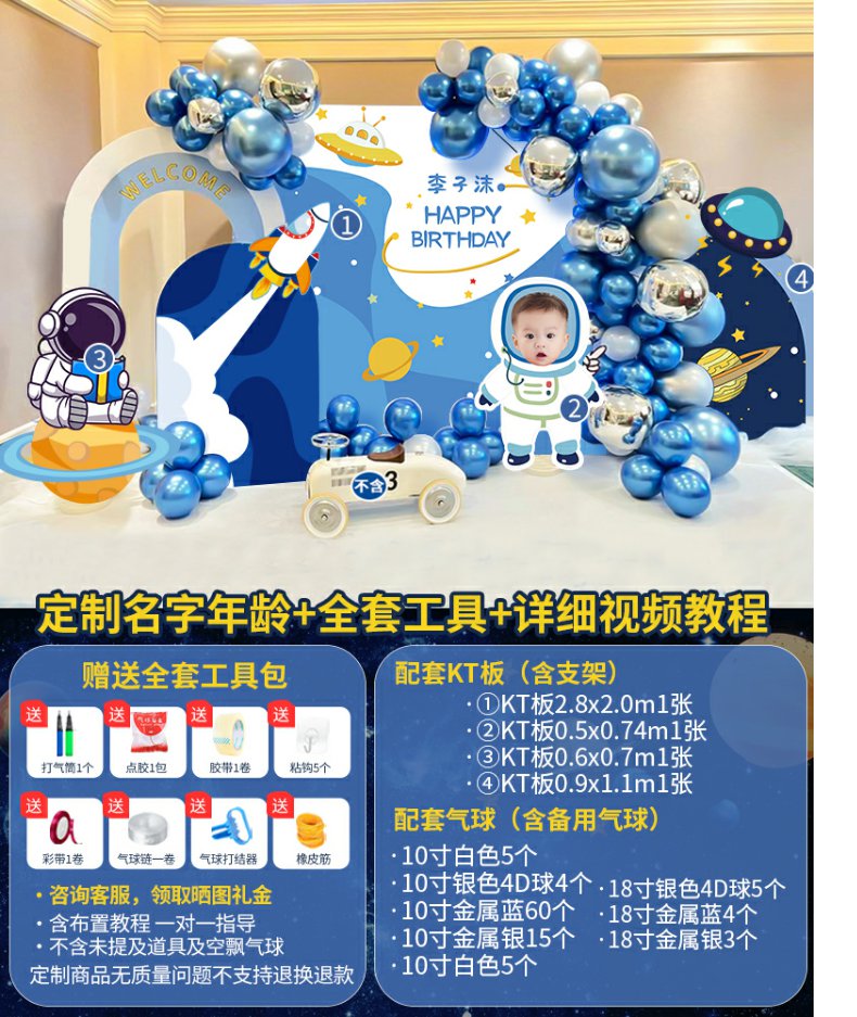 太空人主題派對男孩10周歲生日大型KT背景墻氣球裝飾場景布置套餐