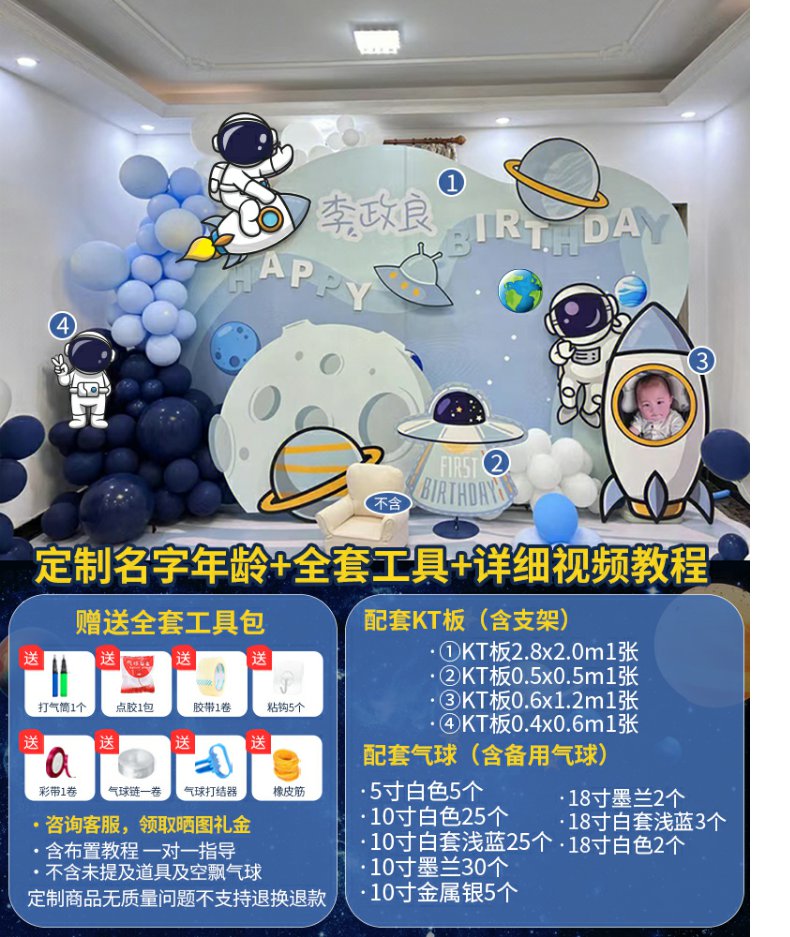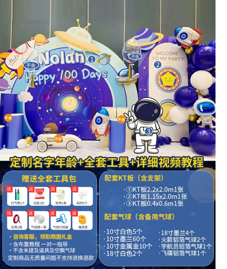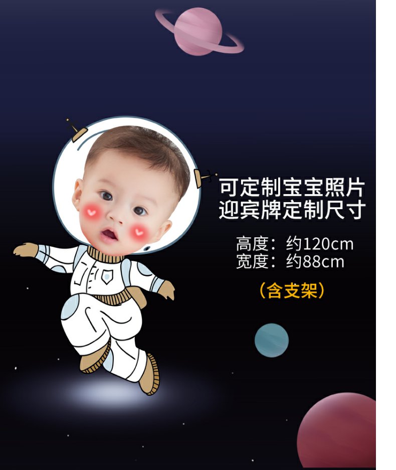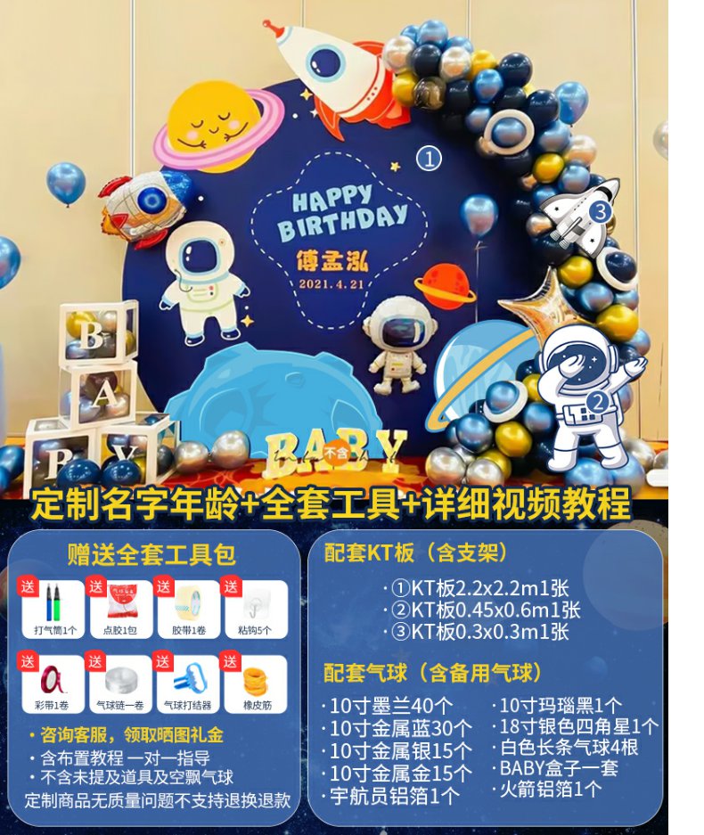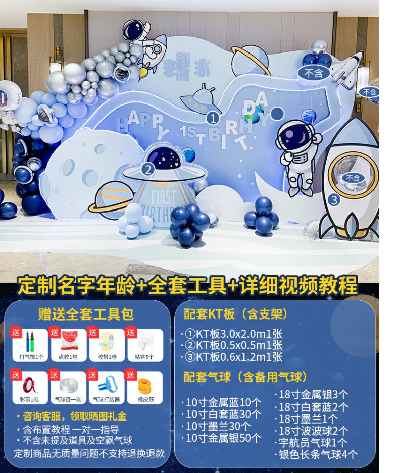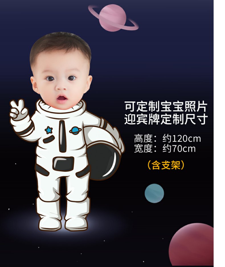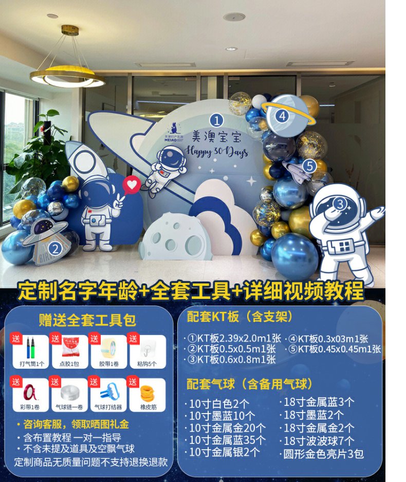 宇航員主題生日布置男孩10周歲滿月百天宴太空人背景kt板名字定制