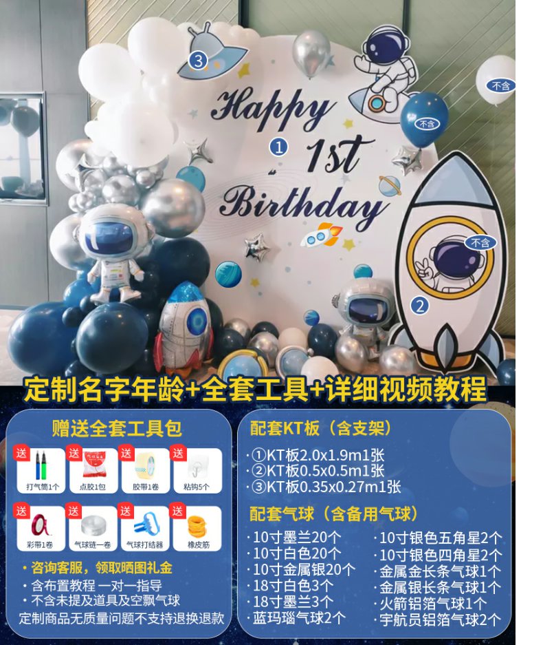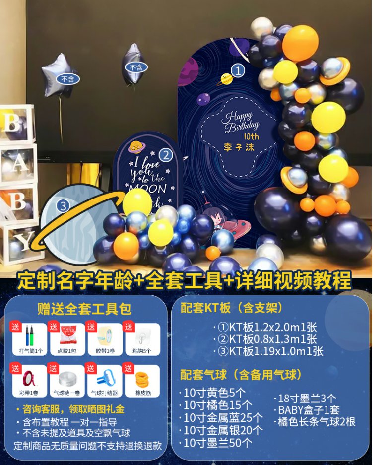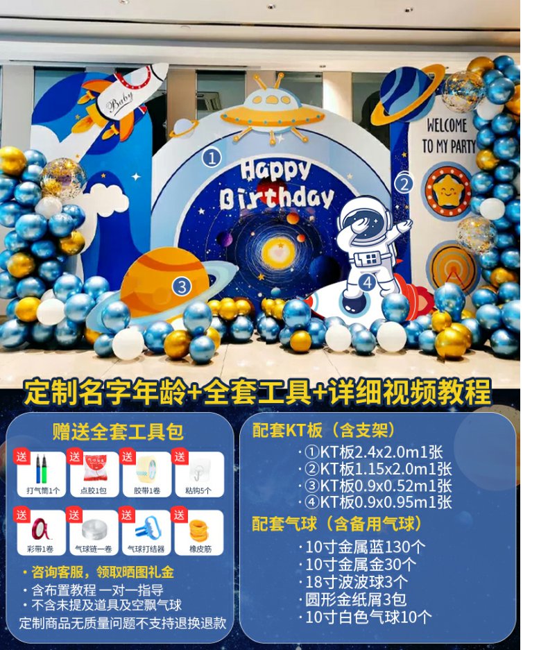 太空人宇航員男孩十10周歲生日裝飾場景布置氣球派對背景墻kt板12