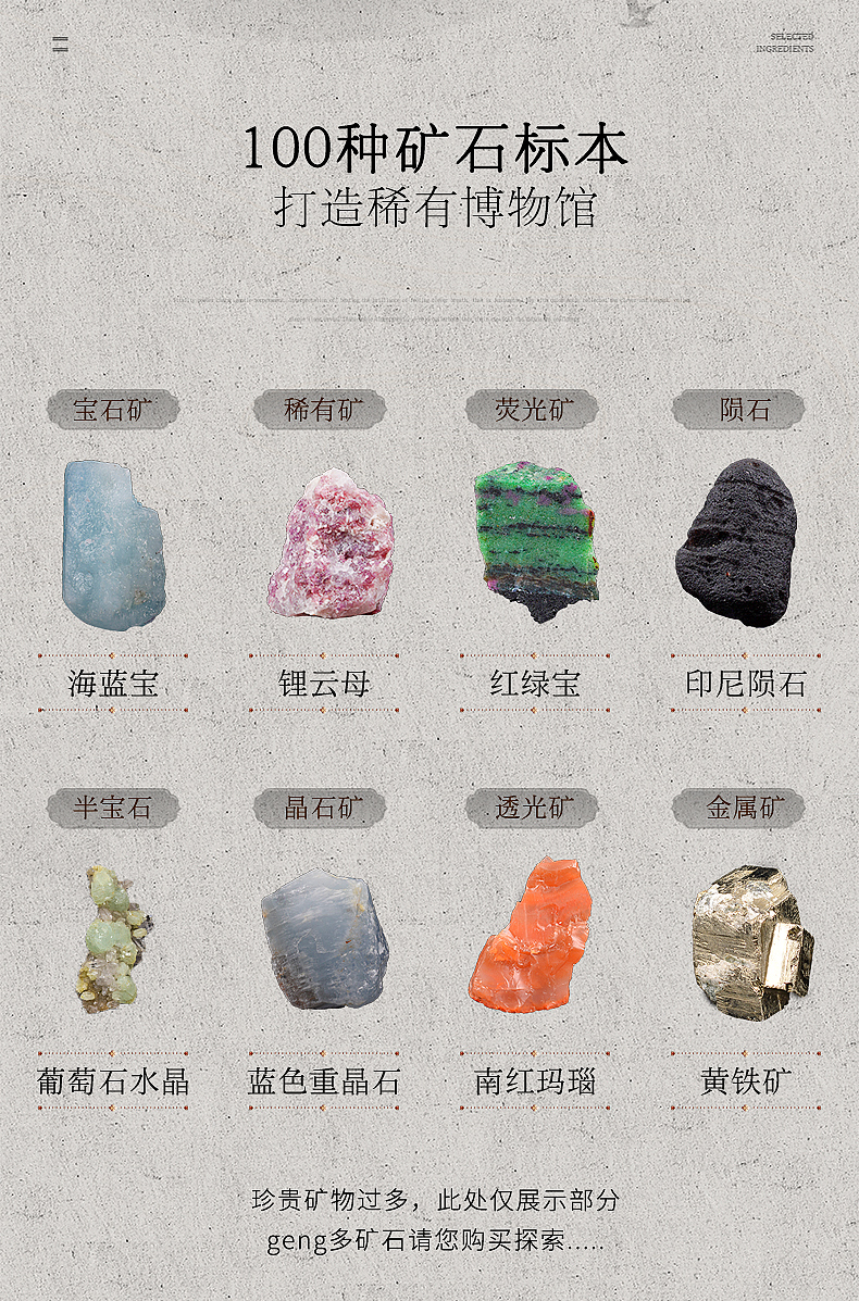 天縱晶華100種礦石高端禮盒水晶礦物原石擺件送禮收藏石頭套裝