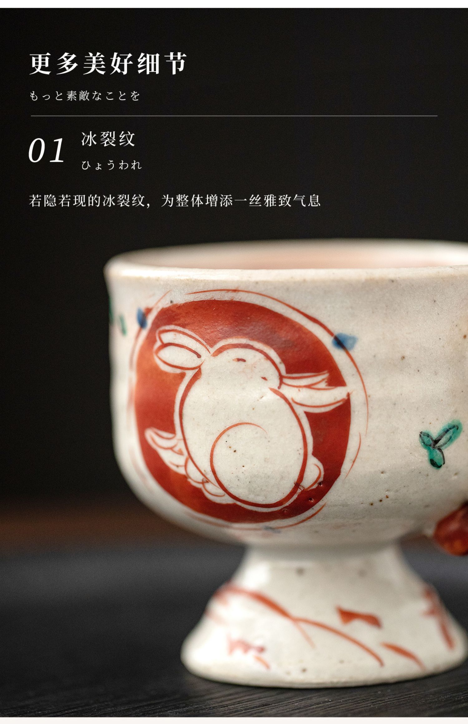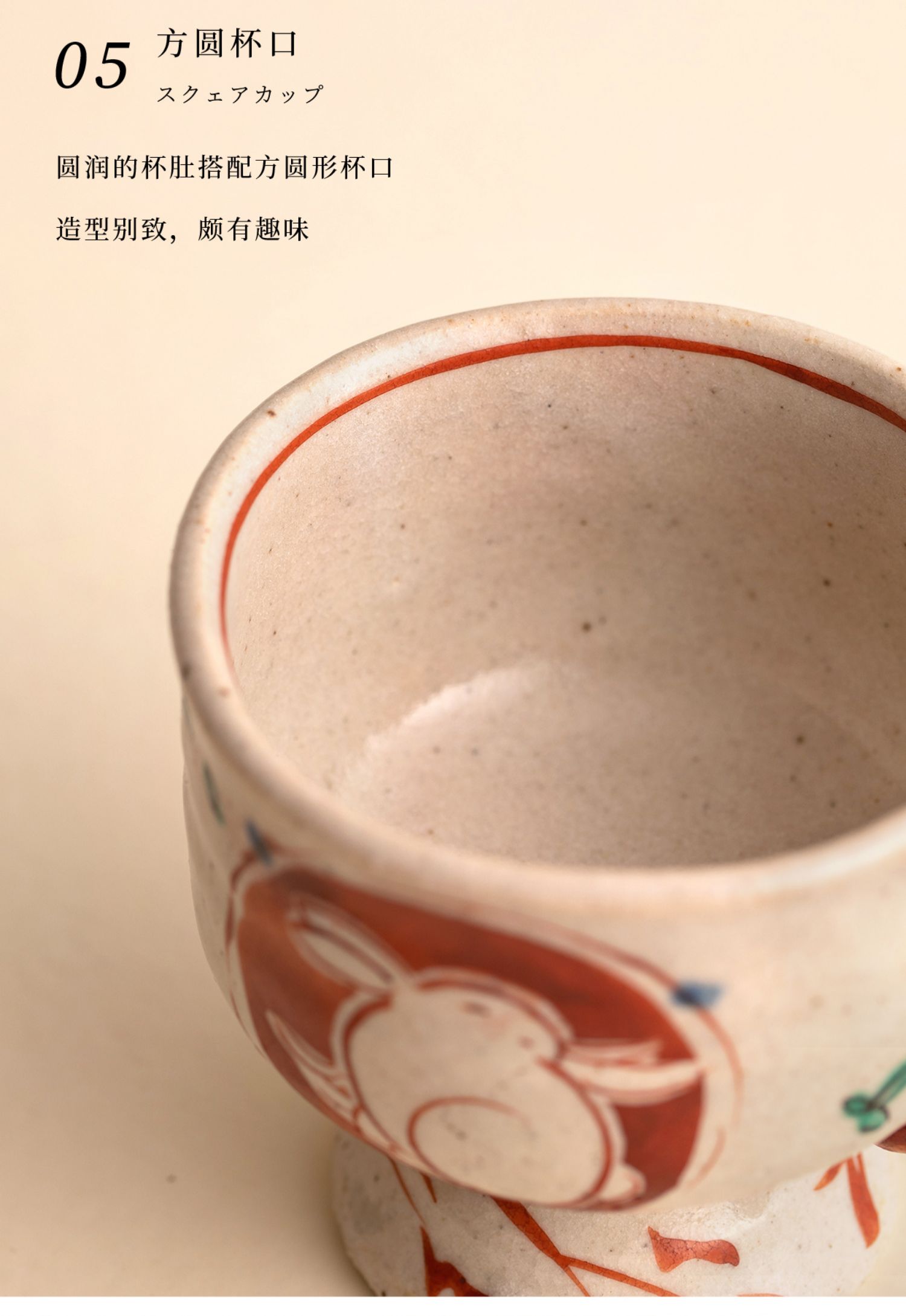 日本原裝進口美濃燒藏珍窯手作赤繪兔子高臺杯日式咖啡杯可愛杯子