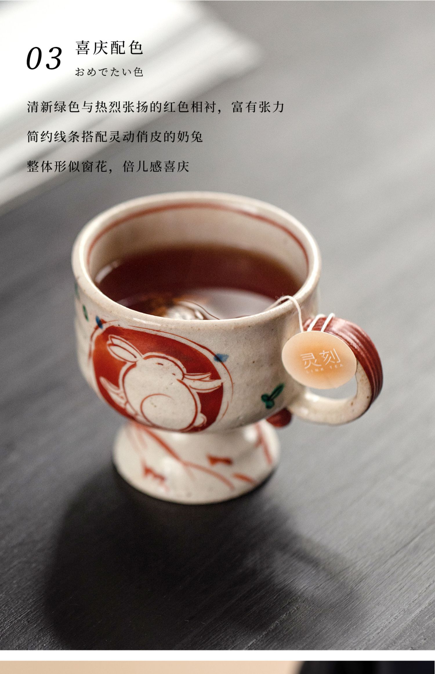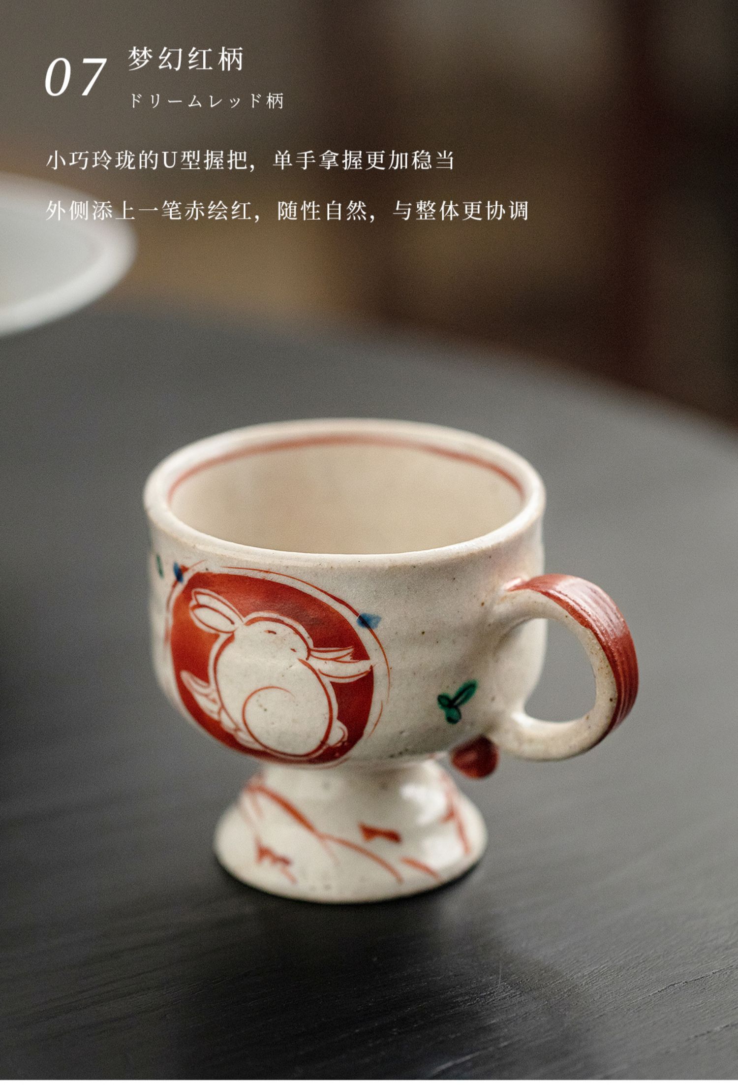 鍋小姐日本進口藏珍窯復古高腳馬克杯日式赤繪兔創意咖啡杯茶杯子