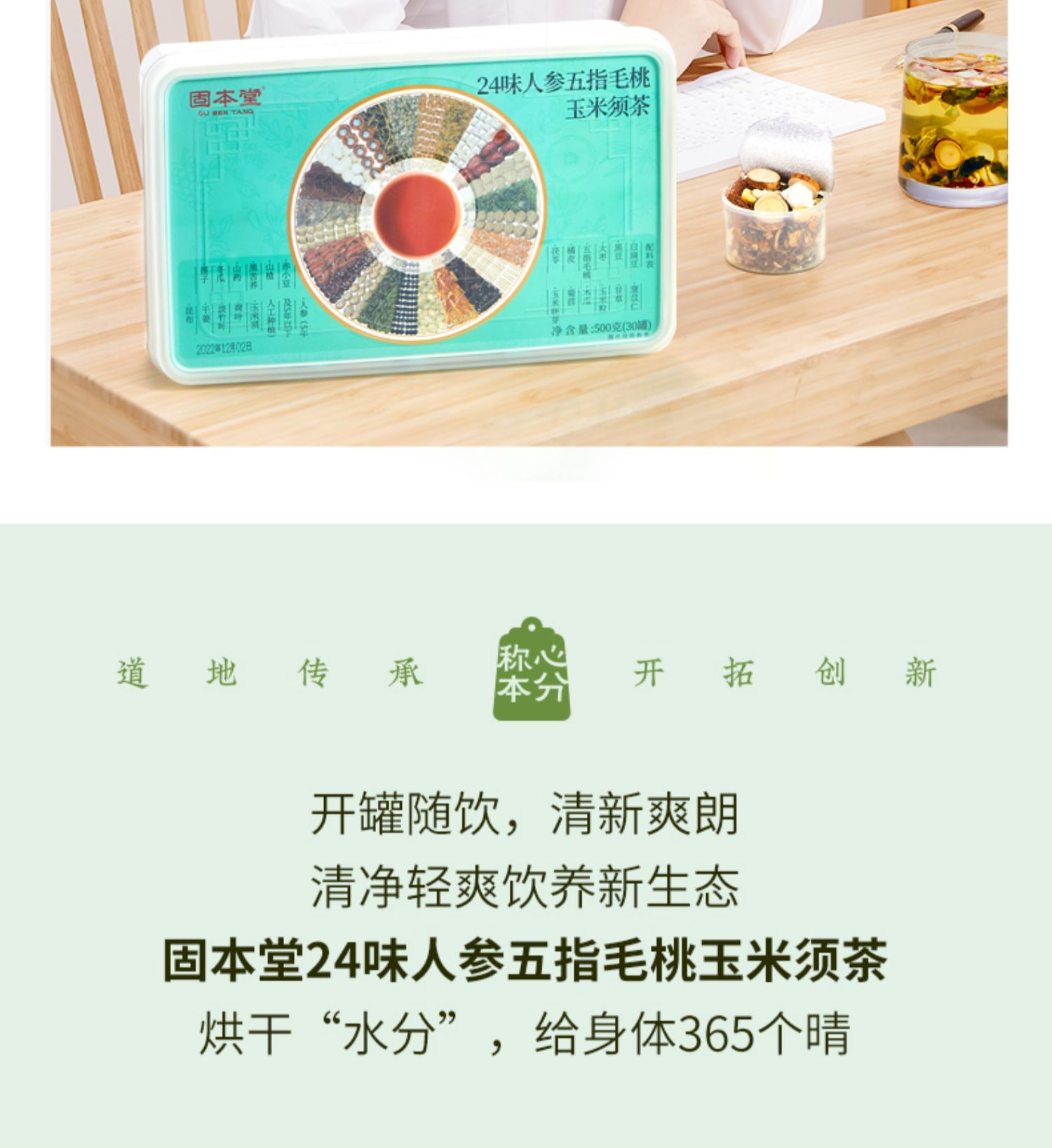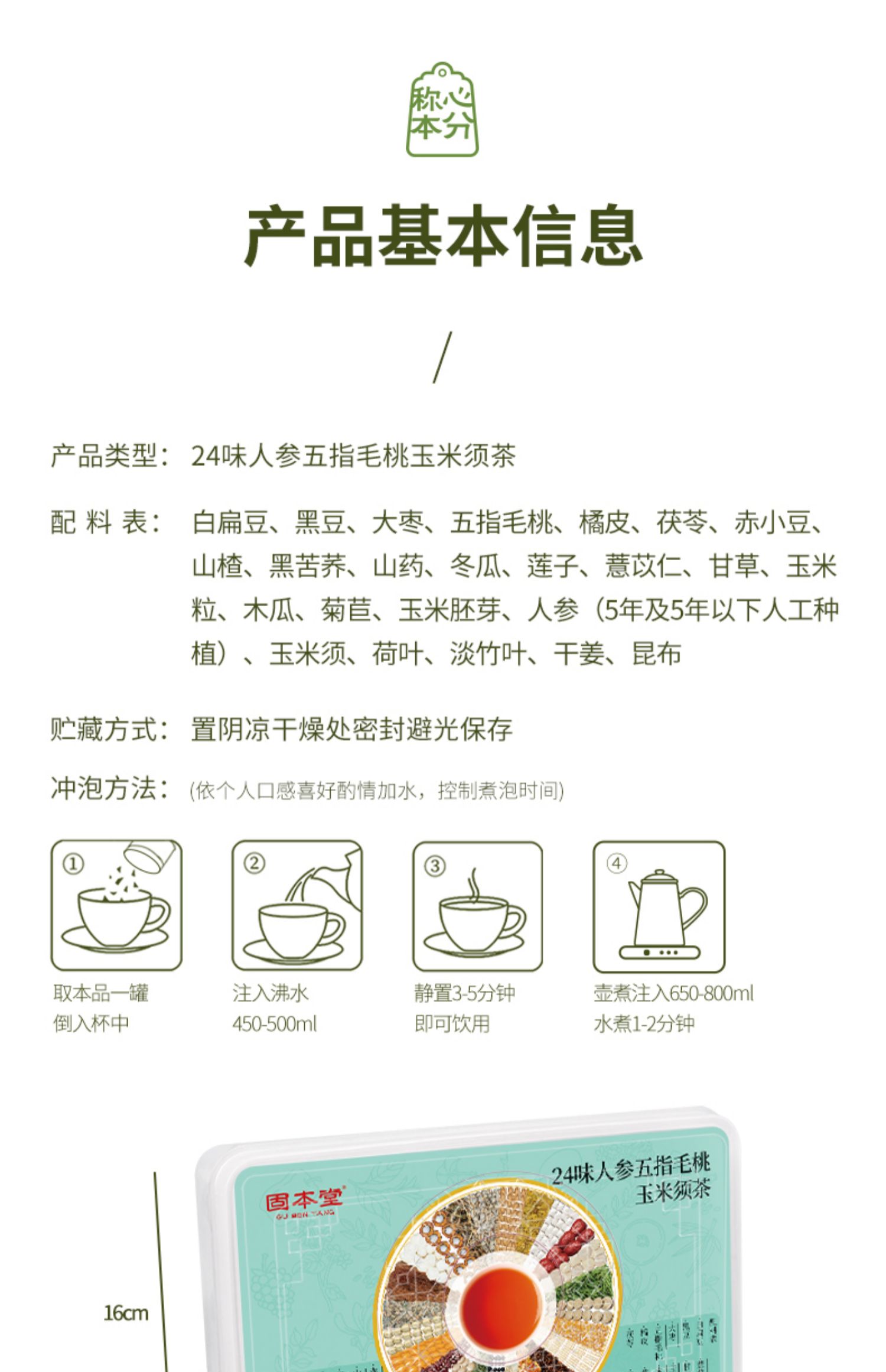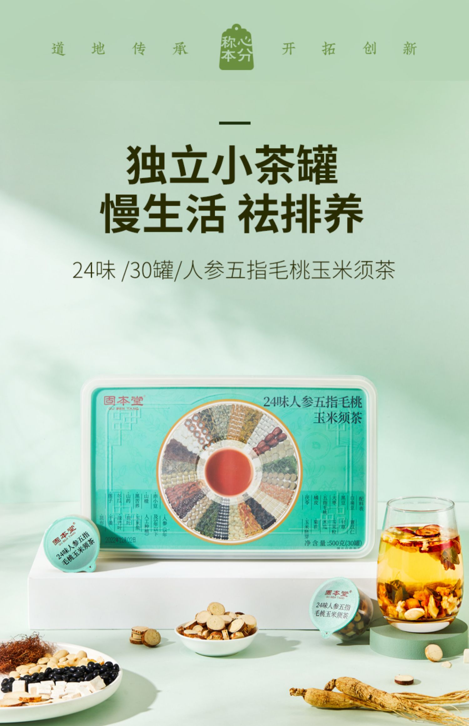 固本堂24味人參五指毛桃玉米須茶紅豆薏米茯苓茶養生茶官方旗艦店
