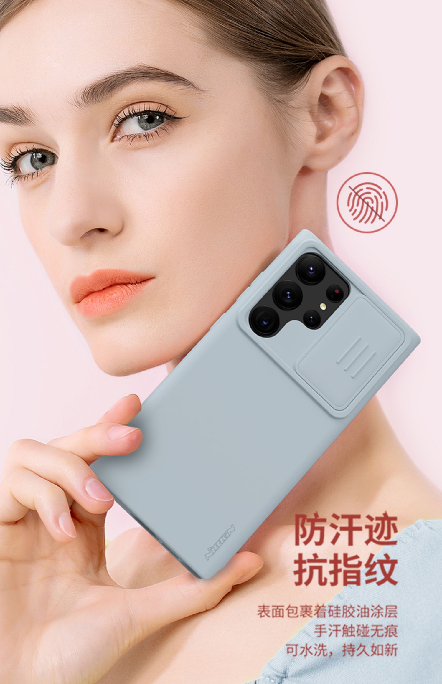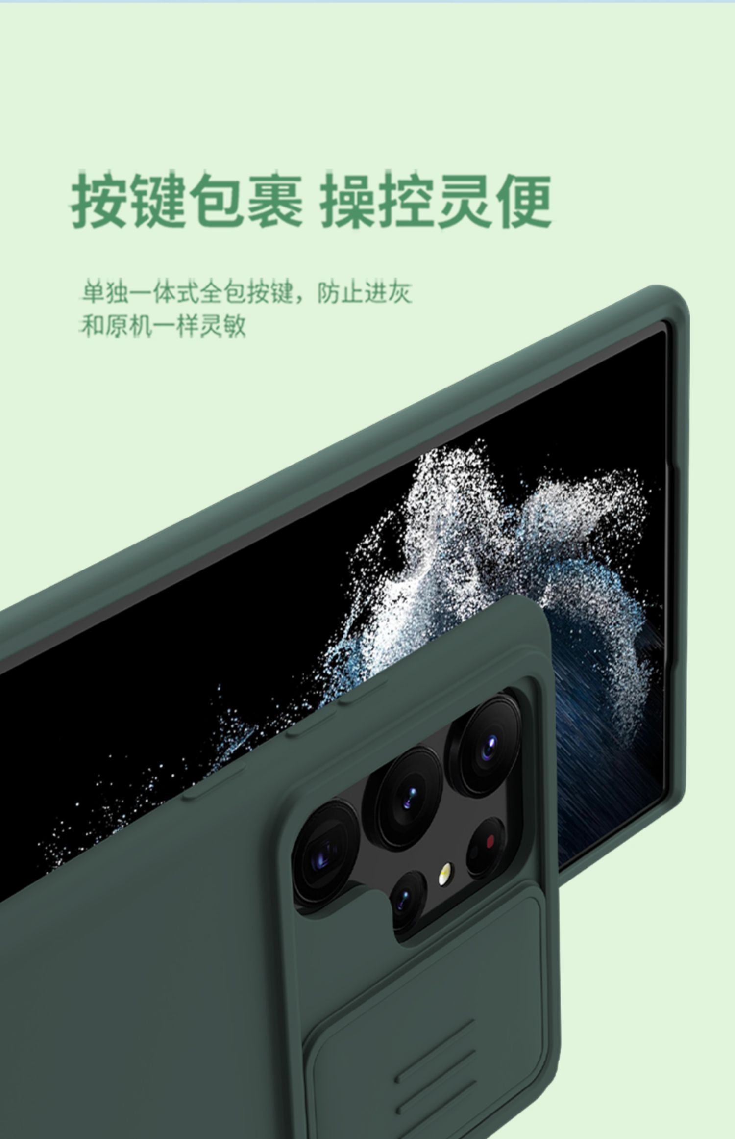 耐爾金 三星S23ultra手機殼鏡頭滑蓋液態硅膠保護套Galaxy S22 Ultra硅膠套攝像頭推拉保護全包邊外殼