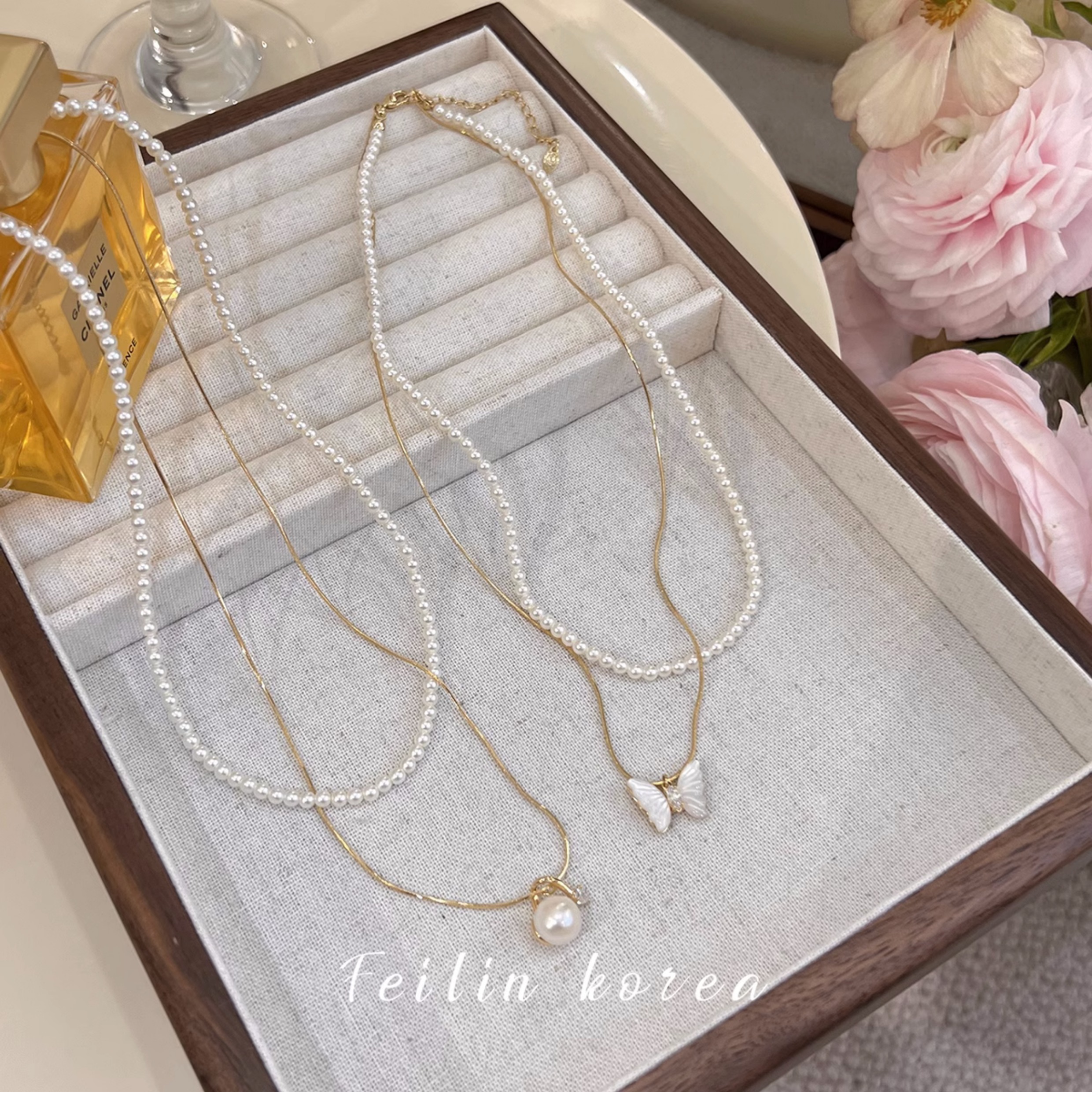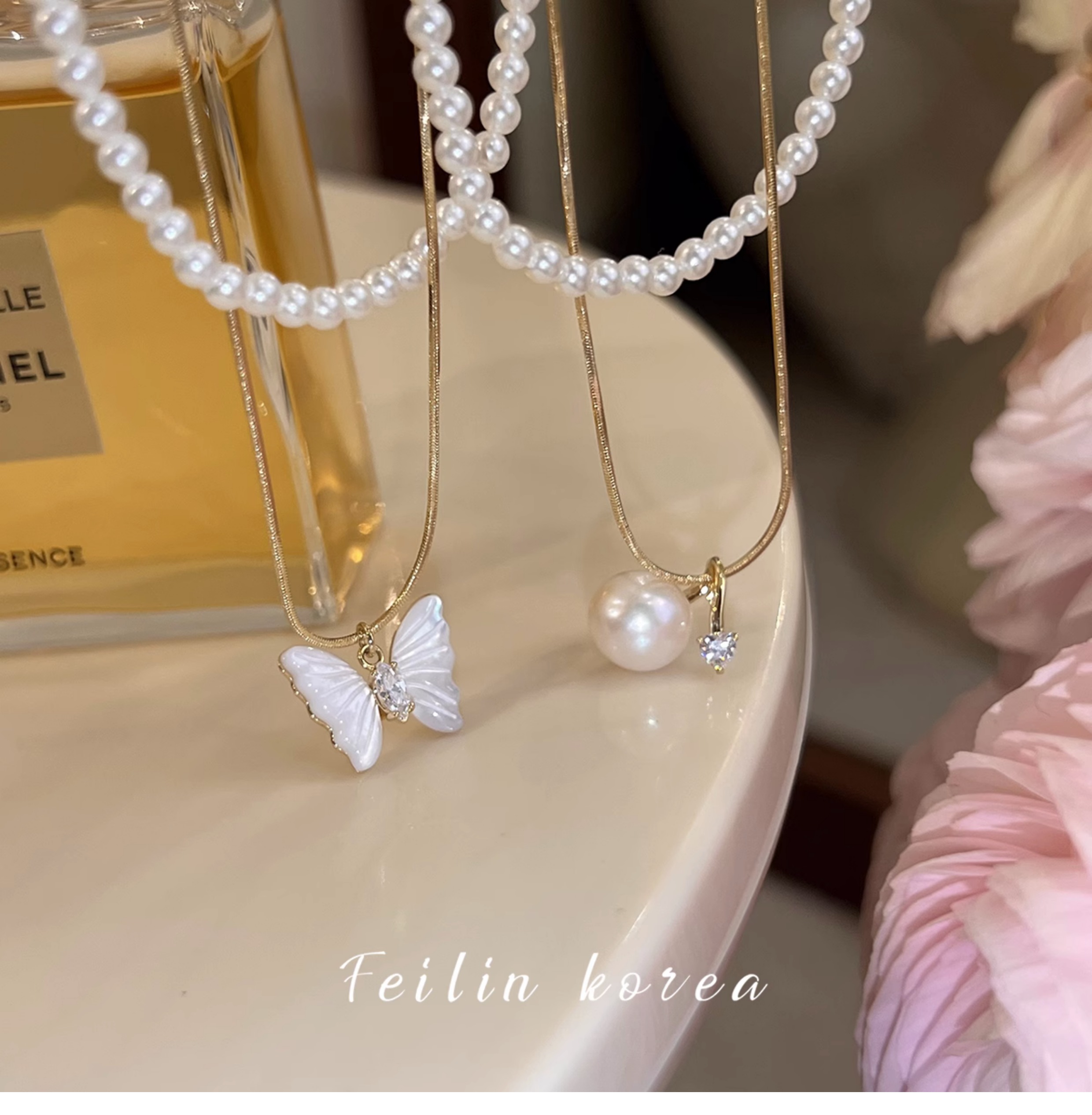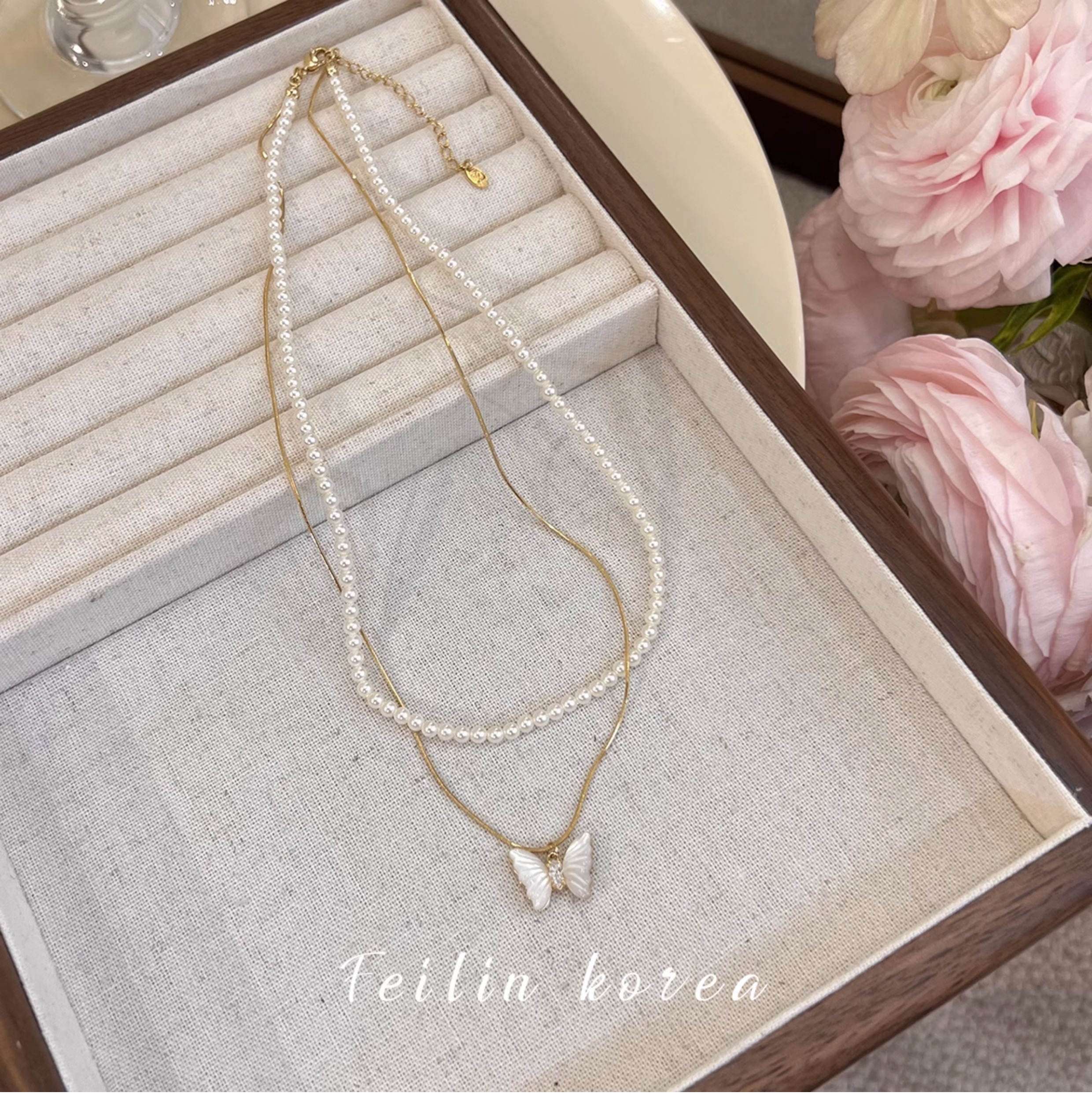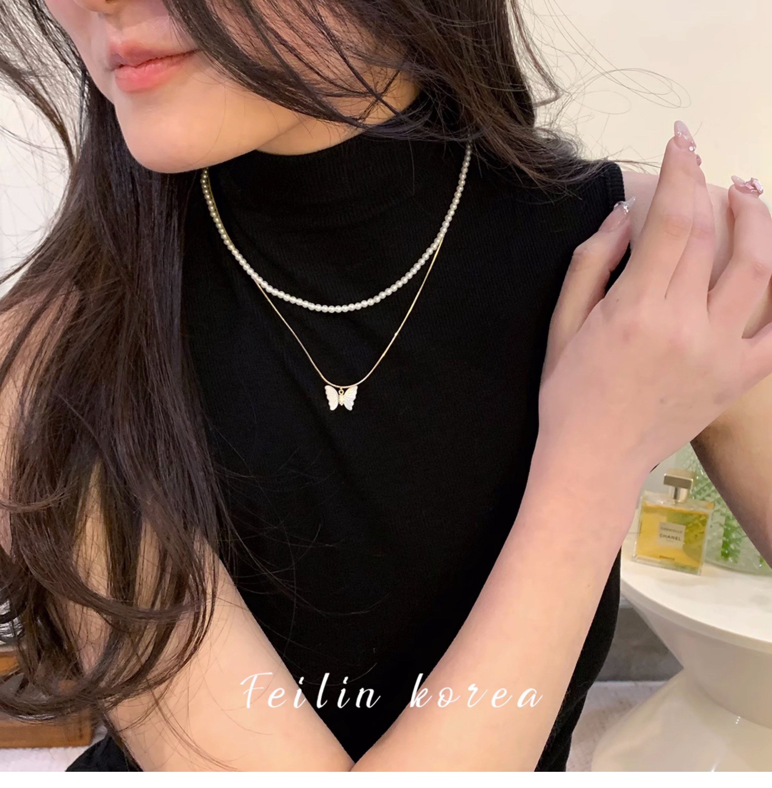 蝴蝶珍珠雙層項鏈女輕奢小眾高級設計感2023年新款鎖骨鏈頸鏈疊戴