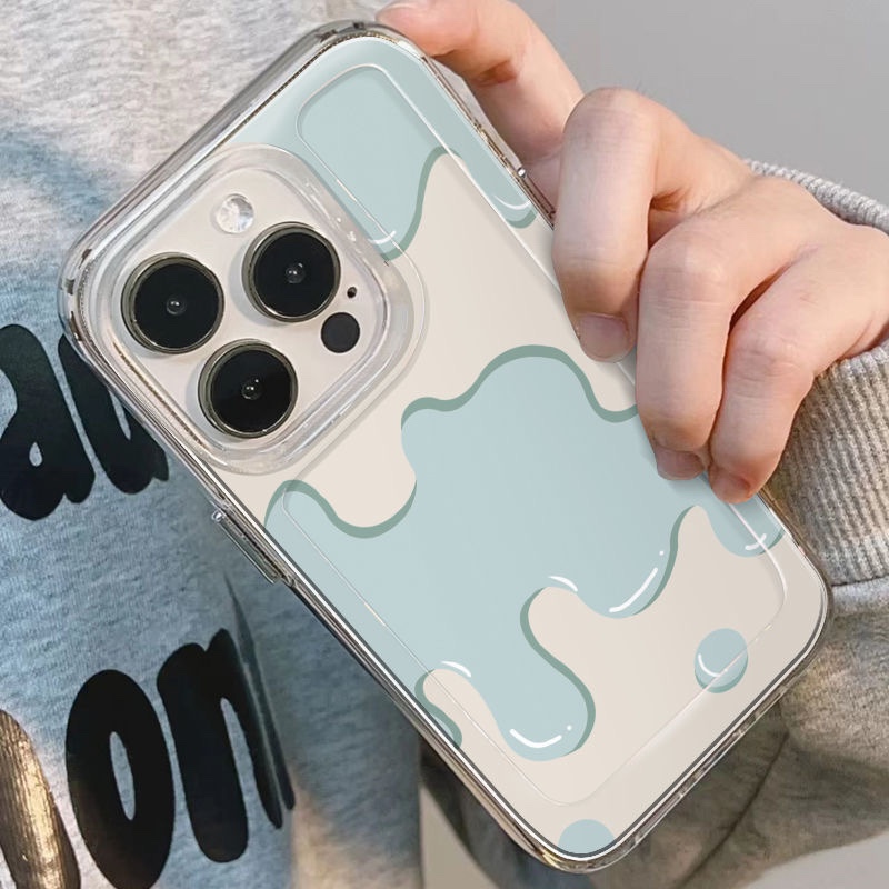 溫柔藍白可愛奶油適蘋果14手機殼蘋果13透明11/12promax高級xs/xr防摔7p創意