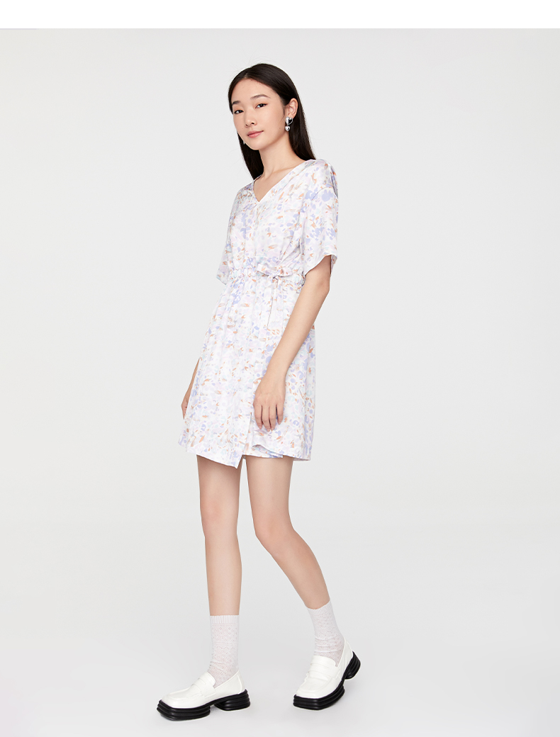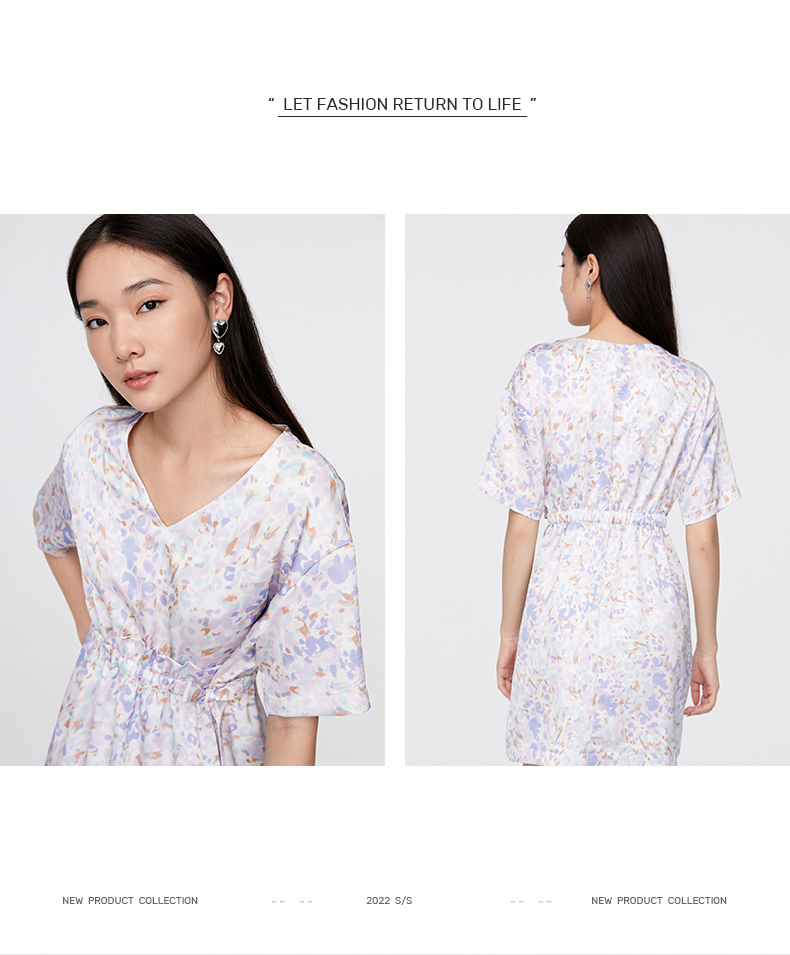 艾萊依商場同款連衣裙女時尚設計感小眾開叉下擺V領蝴蝶結連衣裙
