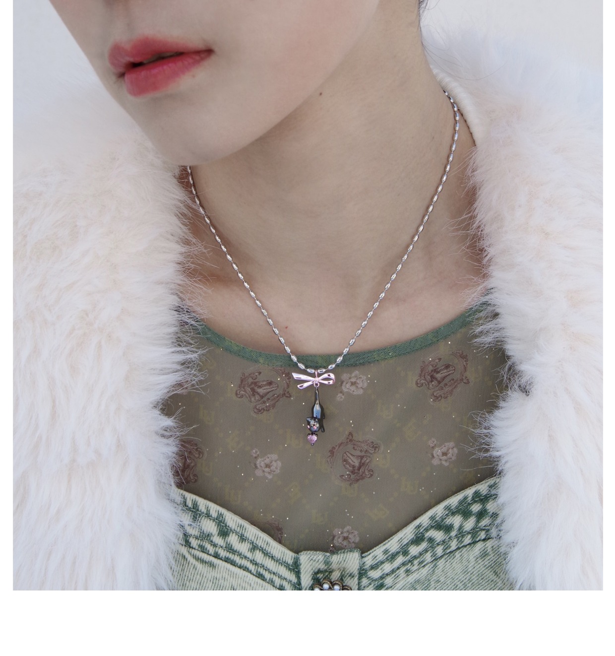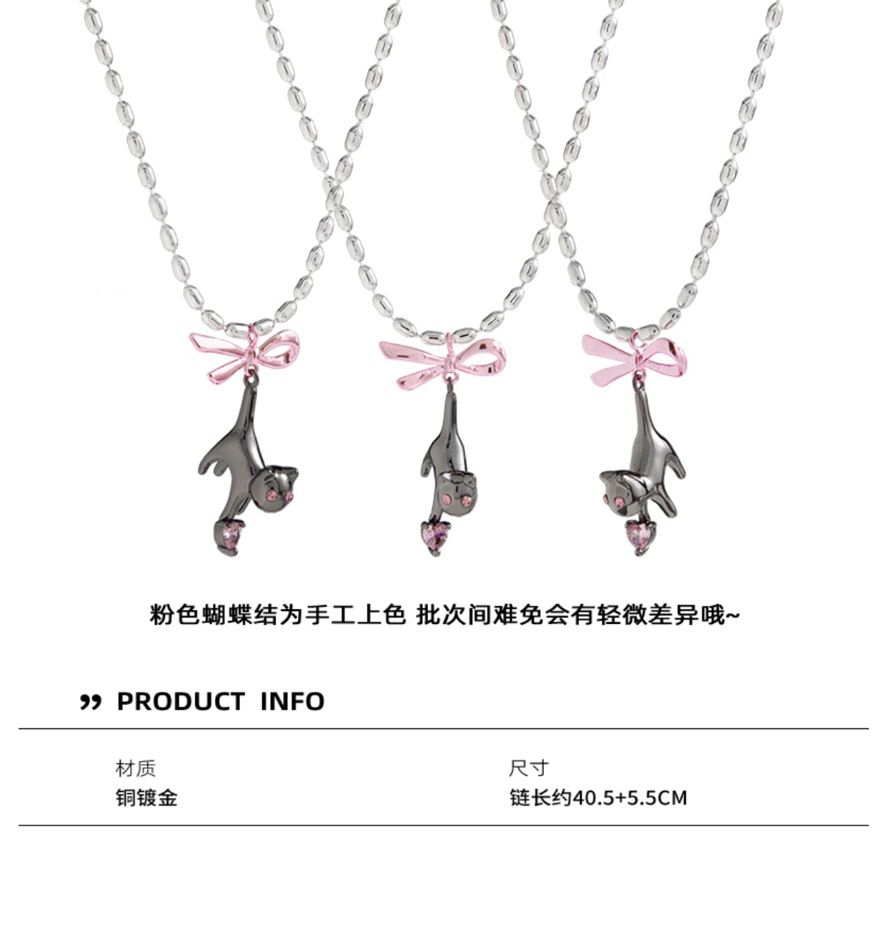 Esakoochi漂亮的小貓~原創小眾設計項鏈黑貓粉色蝴蝶結鎖骨鏈女