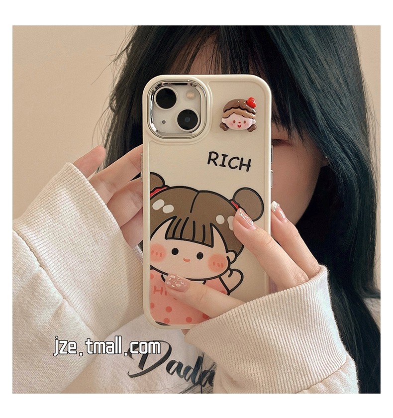 可愛立體卡通女孩適用蘋果14手機殼iPhone13ProMax新款12防摔套13pro硅膠11女款14pro韓風簡約創意小眾全包軟