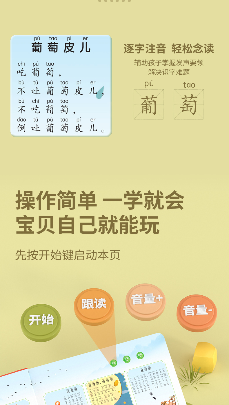 寶寶學唱童謠300首點讀發聲書 會說話的早教有聲書0-1-2-3歲幼兒語言表達啟蒙認知繪本書籍3到6歲兒童讀讀童謠 兒歌三百首有聲讀物