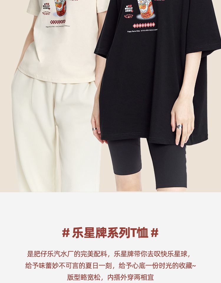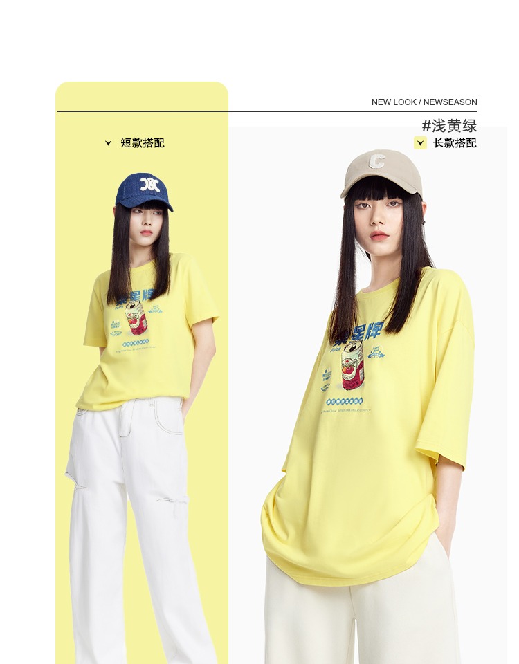 班尼路夏季新款女裝圓領寬松純棉撞色T恤女潮流ins短袖體恤上衣