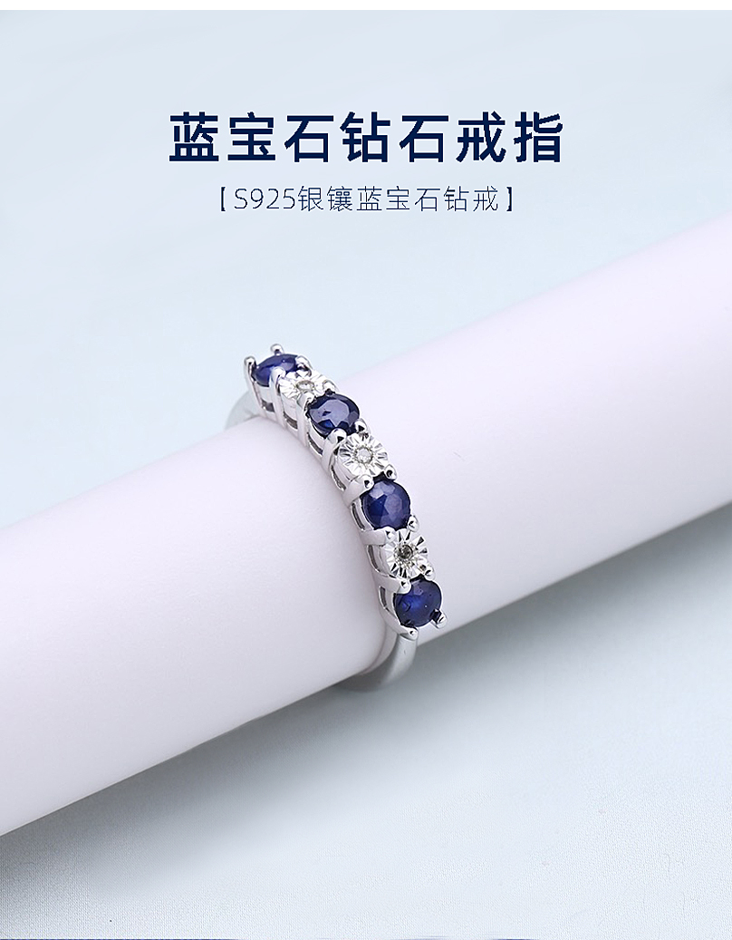 藍寶石戒指18k金排鉆925純銀女輕奢高級感時尚送女友禮物不掉