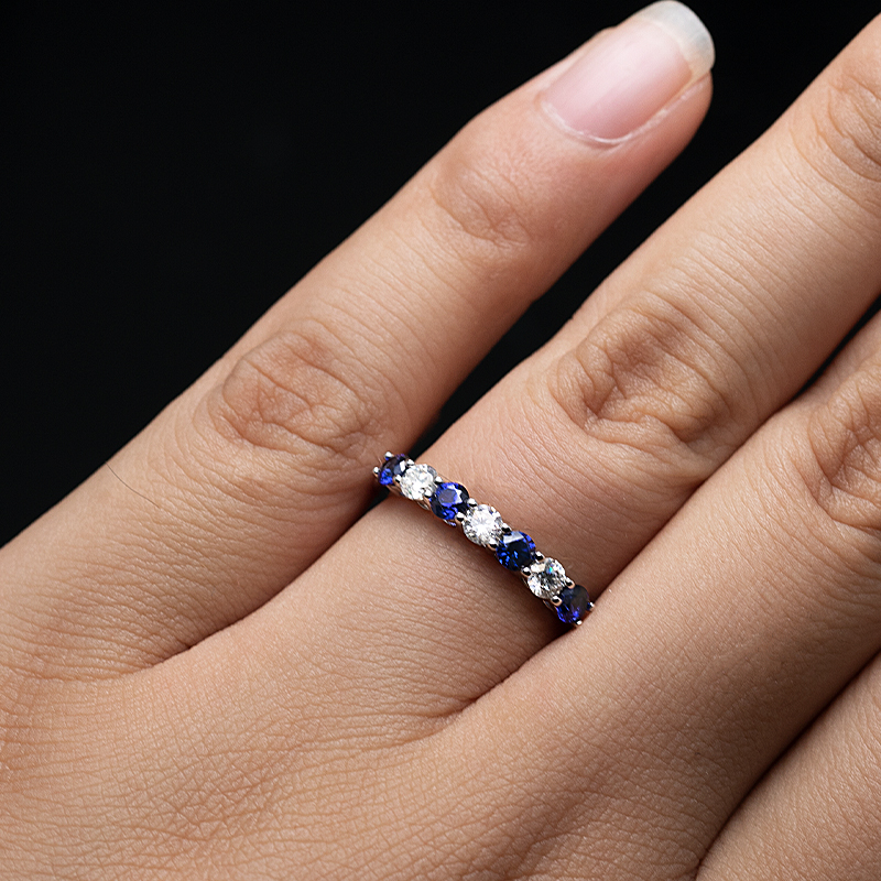 百搭條戒s925純銀高碳鉆彩寶寶石鑲嵌排戒氣質時尚微鑲搭配鉆戒