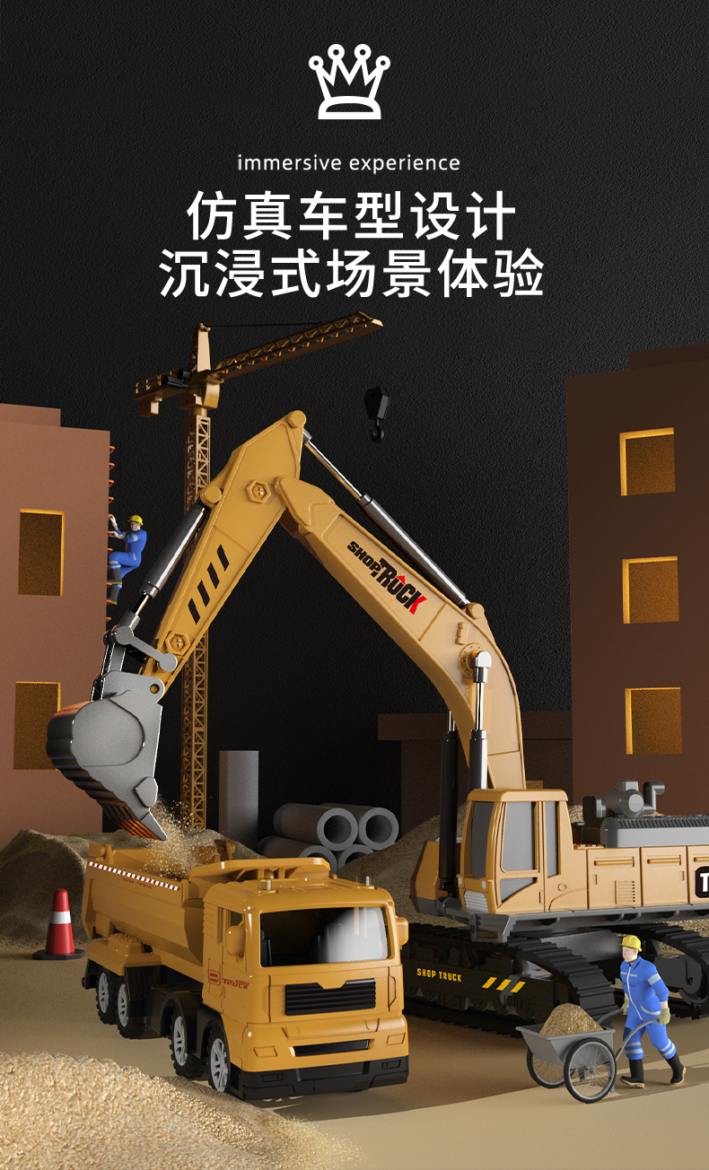 兒童合金挖掘機玩具工程車套裝大型推挖土機吊車模型男孩童2-3歲4