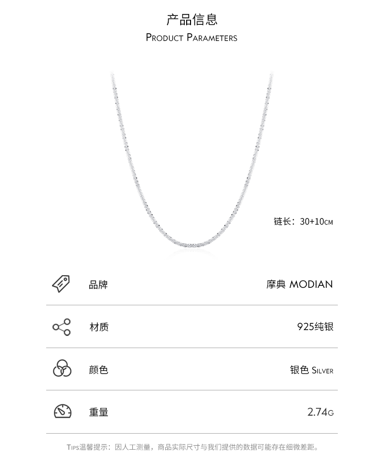 modian 925純銀女輕奢裸鏈鎖骨鏈