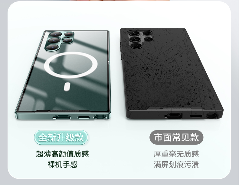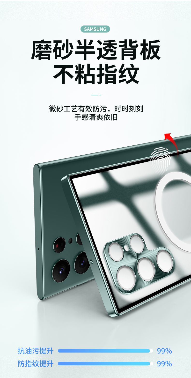 磁吸護鏡金屬邊框適用三星S22Ultra手機殼推拉扣磨砂S22硬殼s23ultra新款超薄高級感外殼透明散熱磁吸手機套