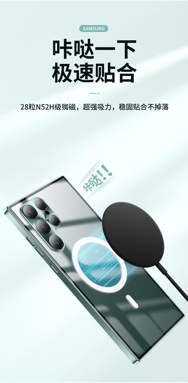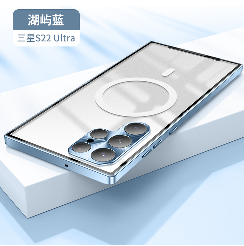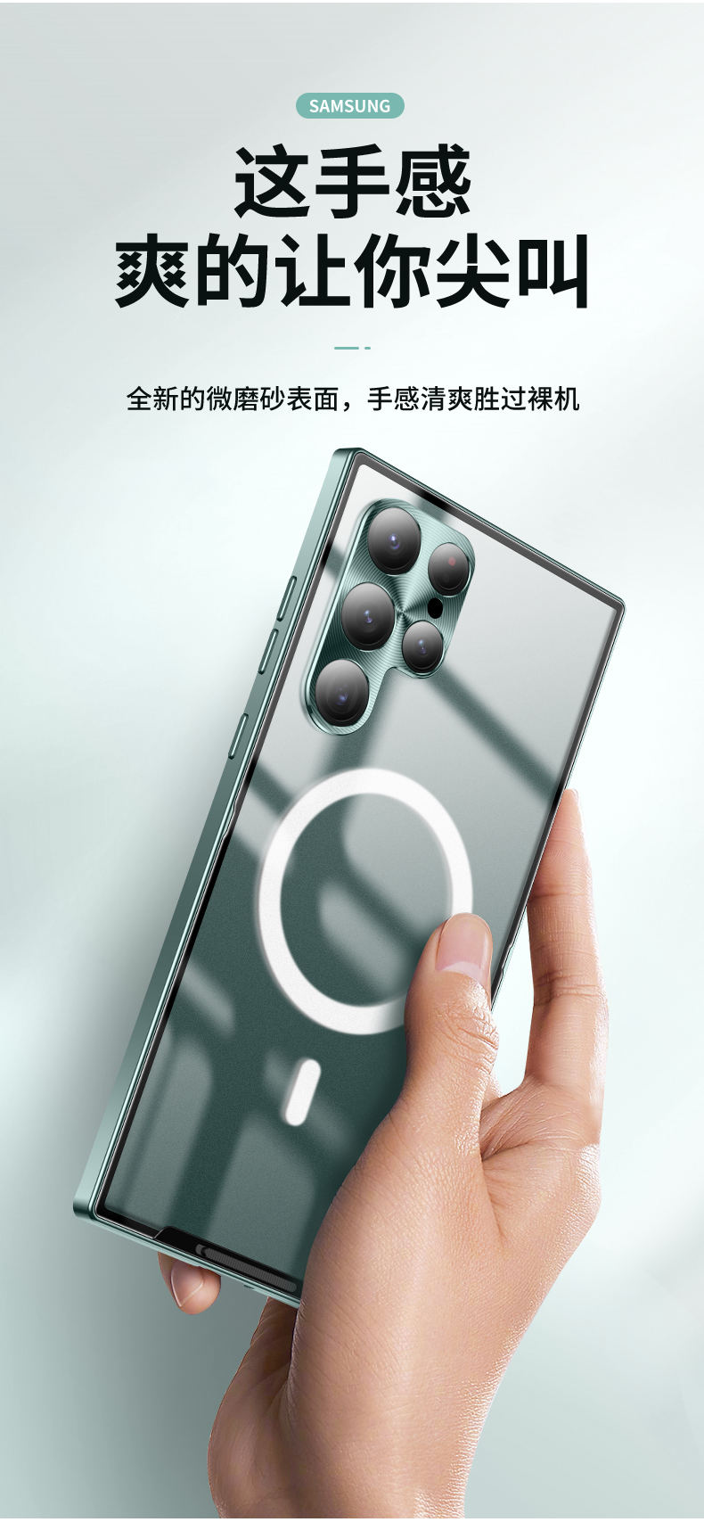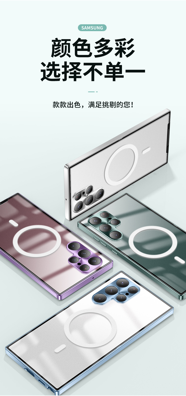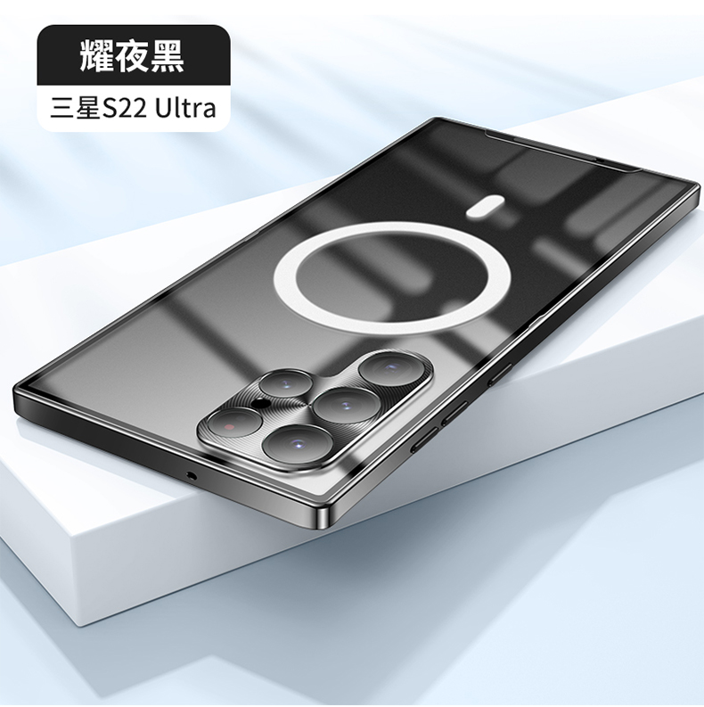 三星S22Ultra手機殼金屬邊框防摔Magsafe磁吸磨砂適配Galaxy S23+保護套鏡頭全包新款半透明超薄s21高檔外殼