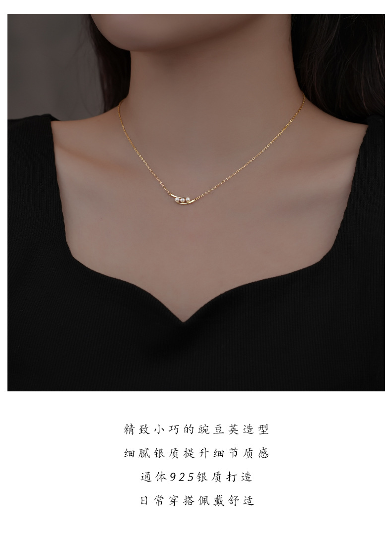原創設計豌豆莢珍珠項鏈女鎖骨鏈純銀小眾設計高級感簡約貝珠吊墜