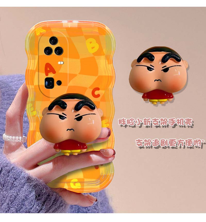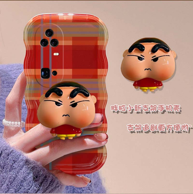 波浪紋卡通蠟筆小新支架適用華為P50PRO手機殼P50E新款P60art高級感P4O/P3O女MATE30創意NOVA7榮耀Magic3Pro
