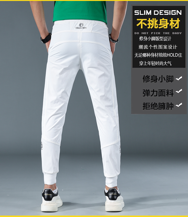 白色褲子男夏季薄款休閑長褲潮牌速干男款百搭運動九分褲冰絲男褲