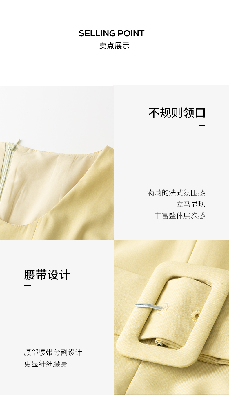 晚白2023夏季新款氣質純色西裝裙收腰顯瘦百搭通勤短袖連衣裙
