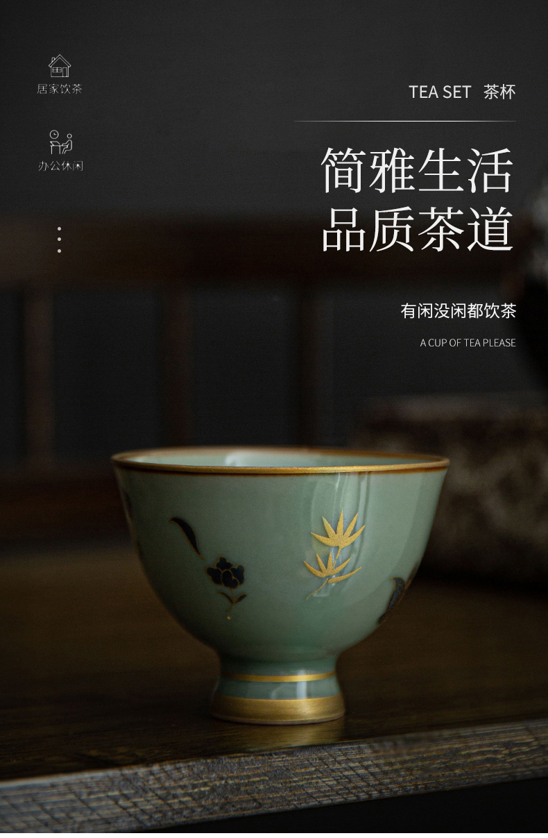 彌言釉上彩手繪主人仿宋高足品茗杯