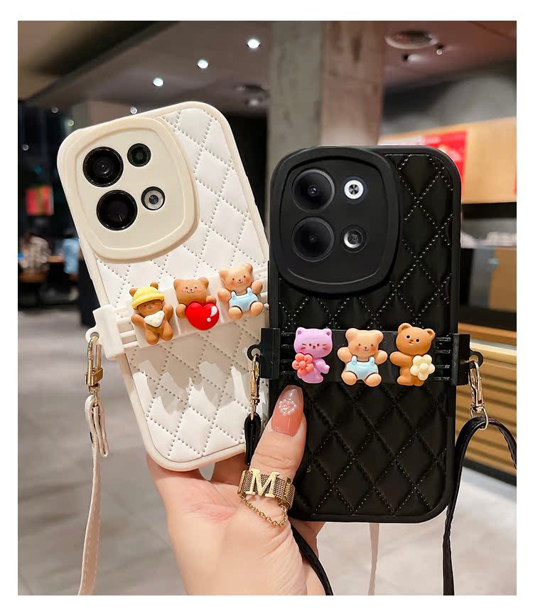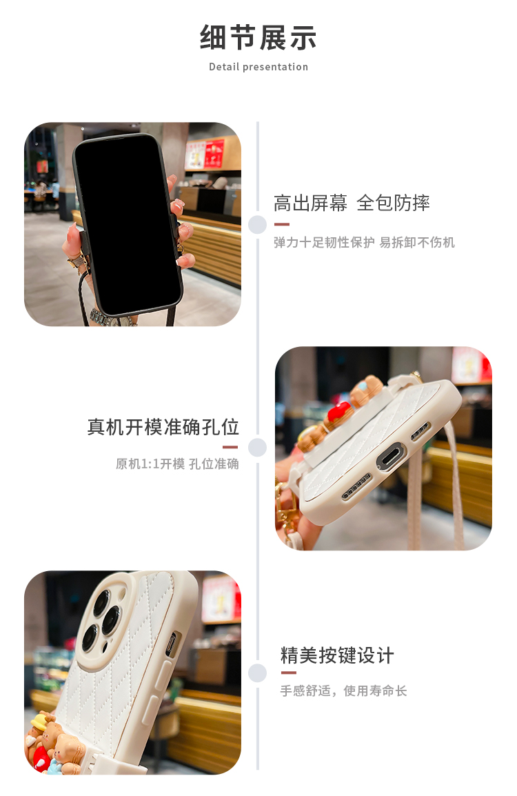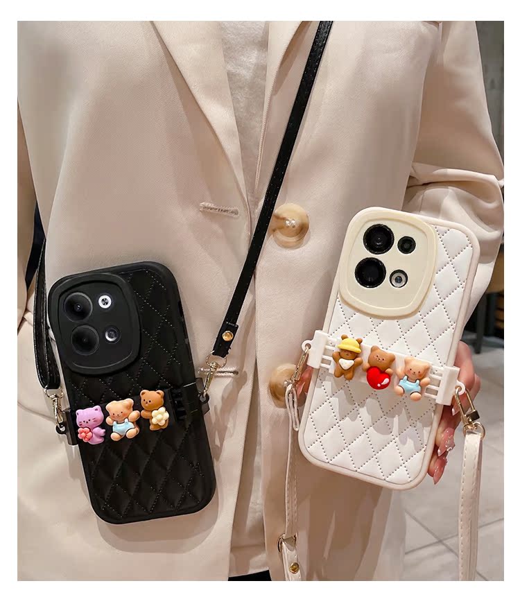 皇冠潮牌熊適用蘋果15Promax手機殼iPhone14硅膠套13Pro全包防摔11菱格X/Xsmax腕帶斜跨12背帶式8Plus高級感