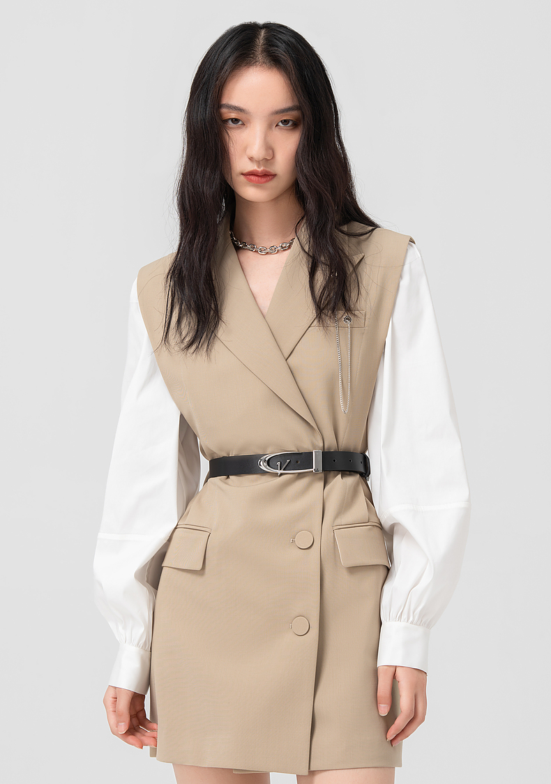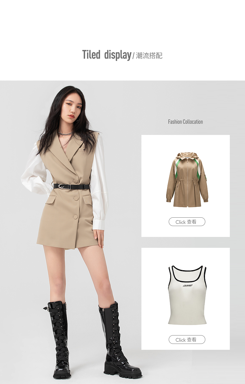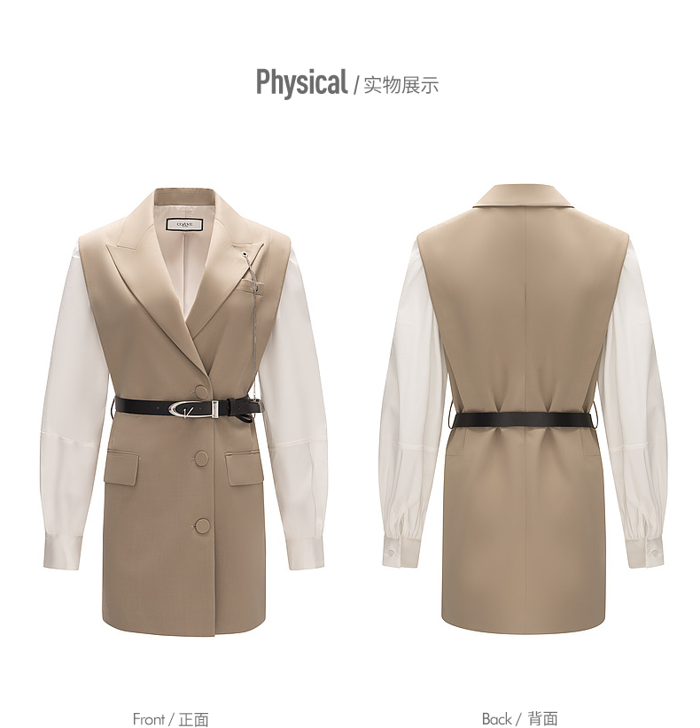 COLOVE卡拉佛西裝連衣裙女2023年春時尚洋氣高級設計感拼接裙子