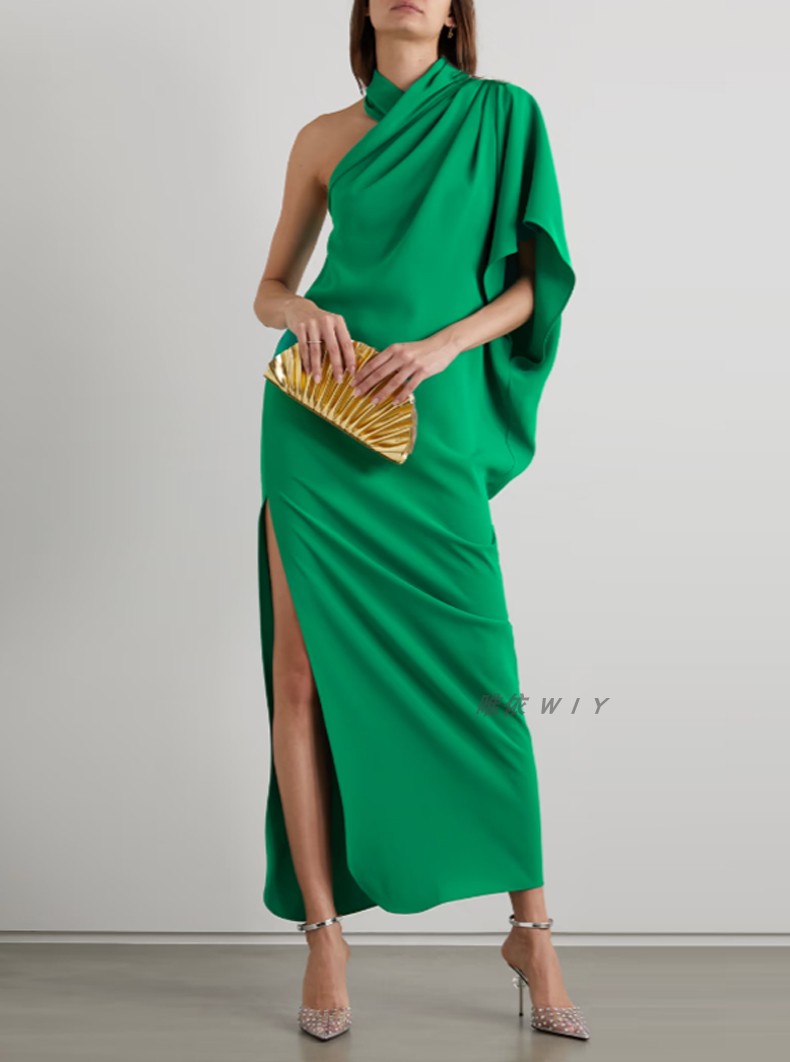 晚禮服個性女生日派對綠色長款舞臺演出年會小禮服連衣裙2023新款