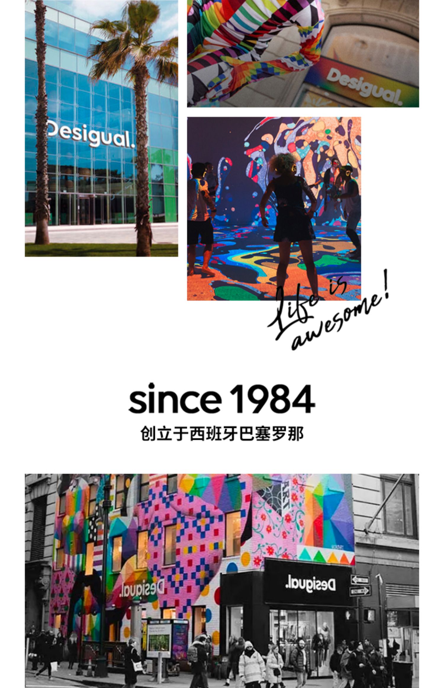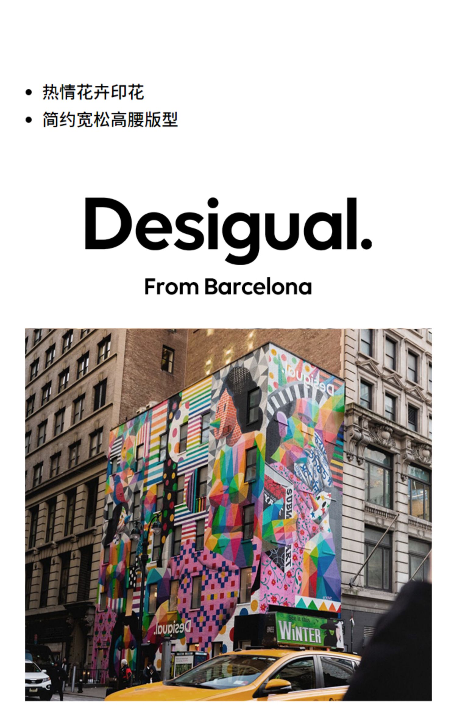 Desigual【西班牙時尚奢品】傘擺印花彈力修身圓領女式連衣裙