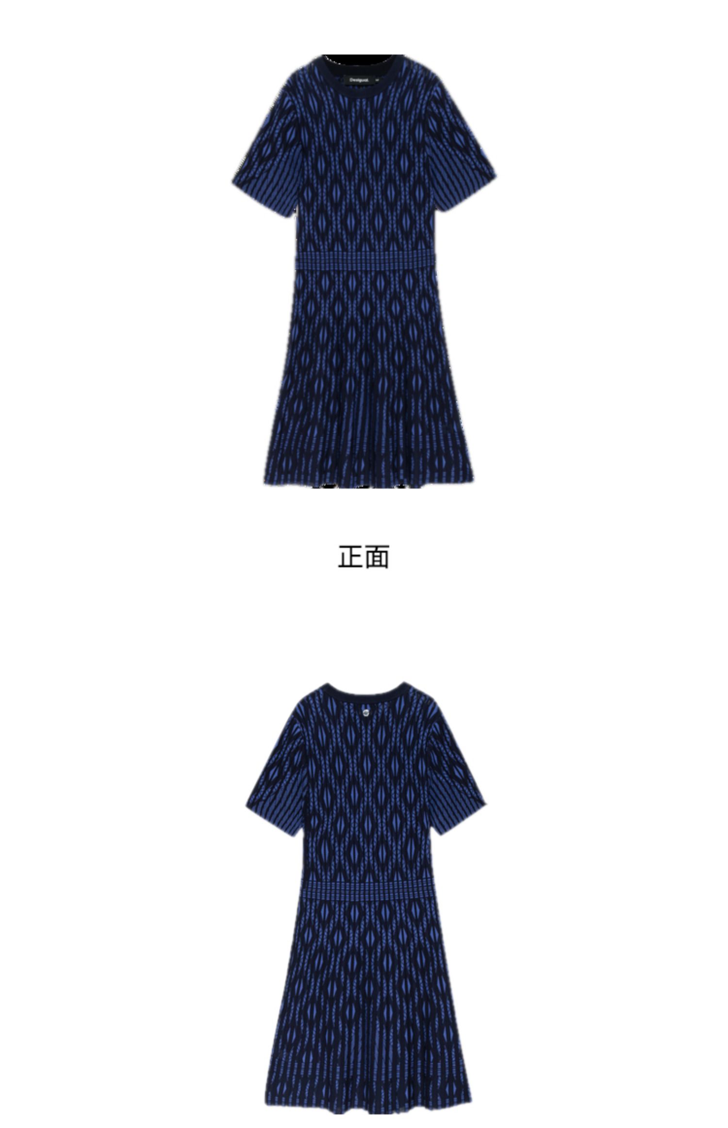 Desigual【西班牙時尚品牌】收腰針梭相拼彈力圓領短袖連衣裙