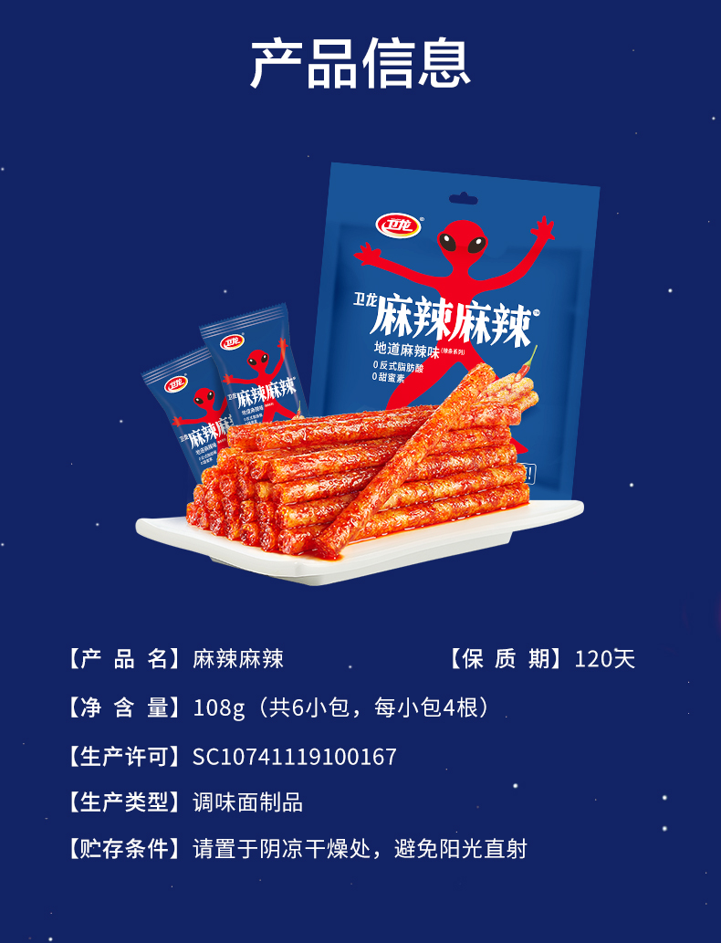 衛龍辣條很麻很辣大面筋辣棒麻辣兒時懷舊好吃的零食小吃休閑食品