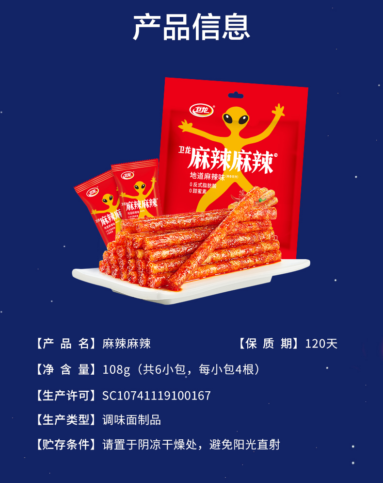 衛龍網紅爆款很麻很辣大辣棒辣條