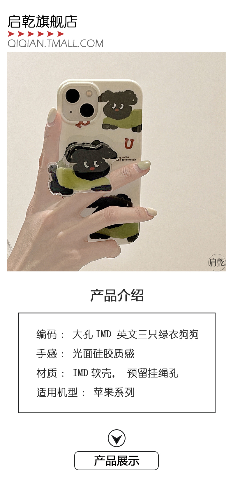 綠色狗狗支架殼iphone14手機殼適用蘋果13promax日韓卡通12/11可愛小眾14promax男女新款硅膠全包防摔啟乾