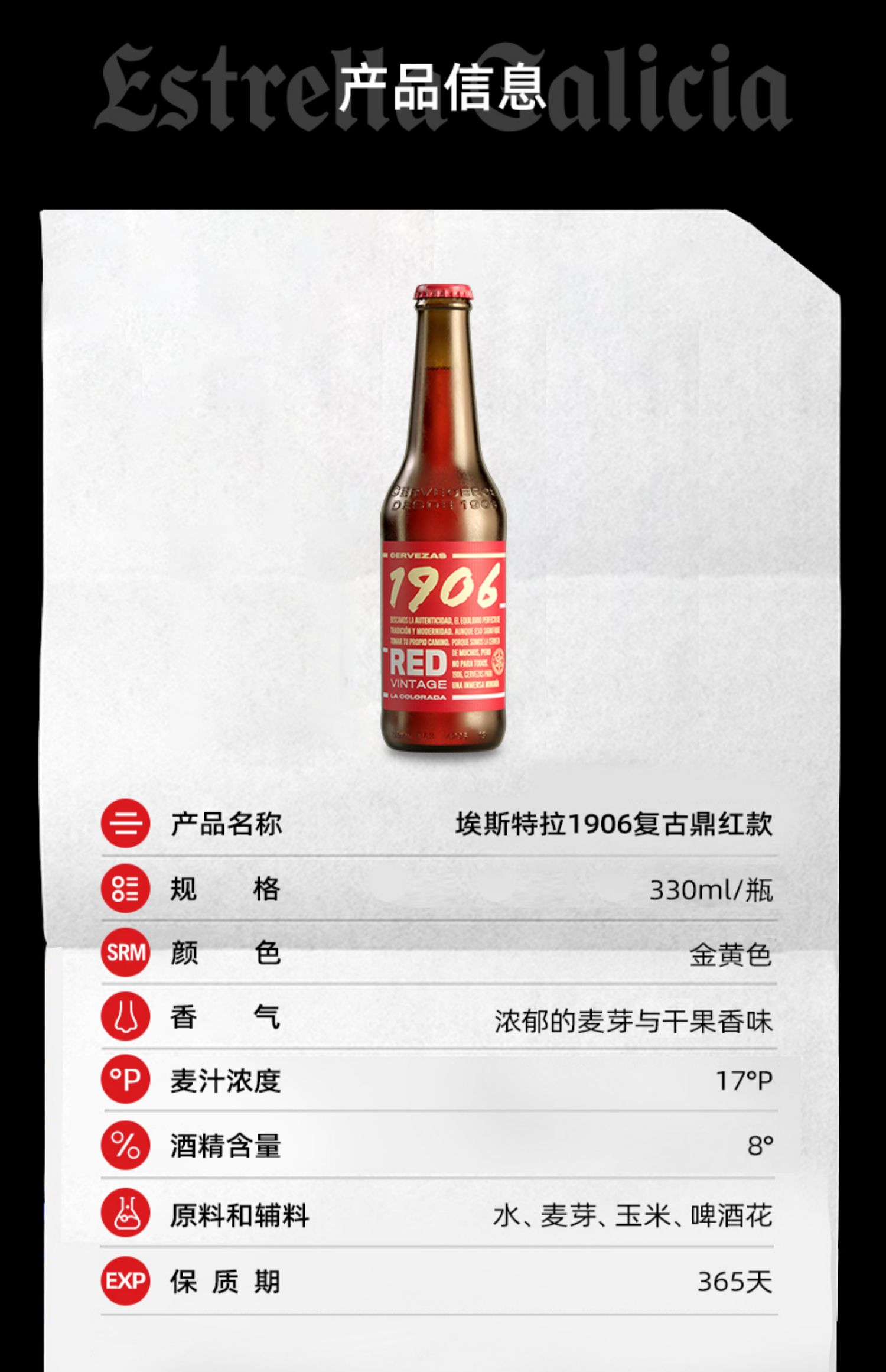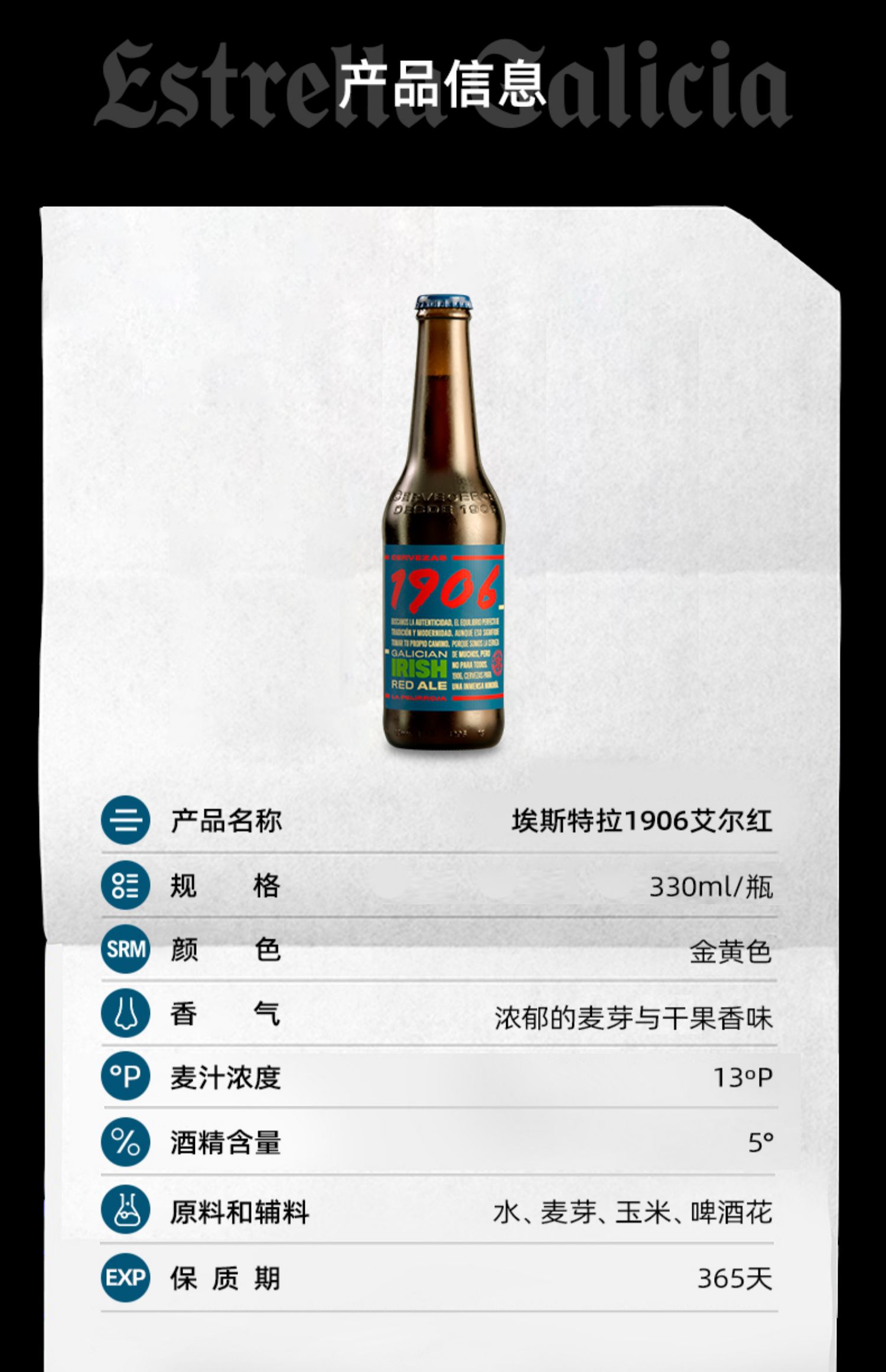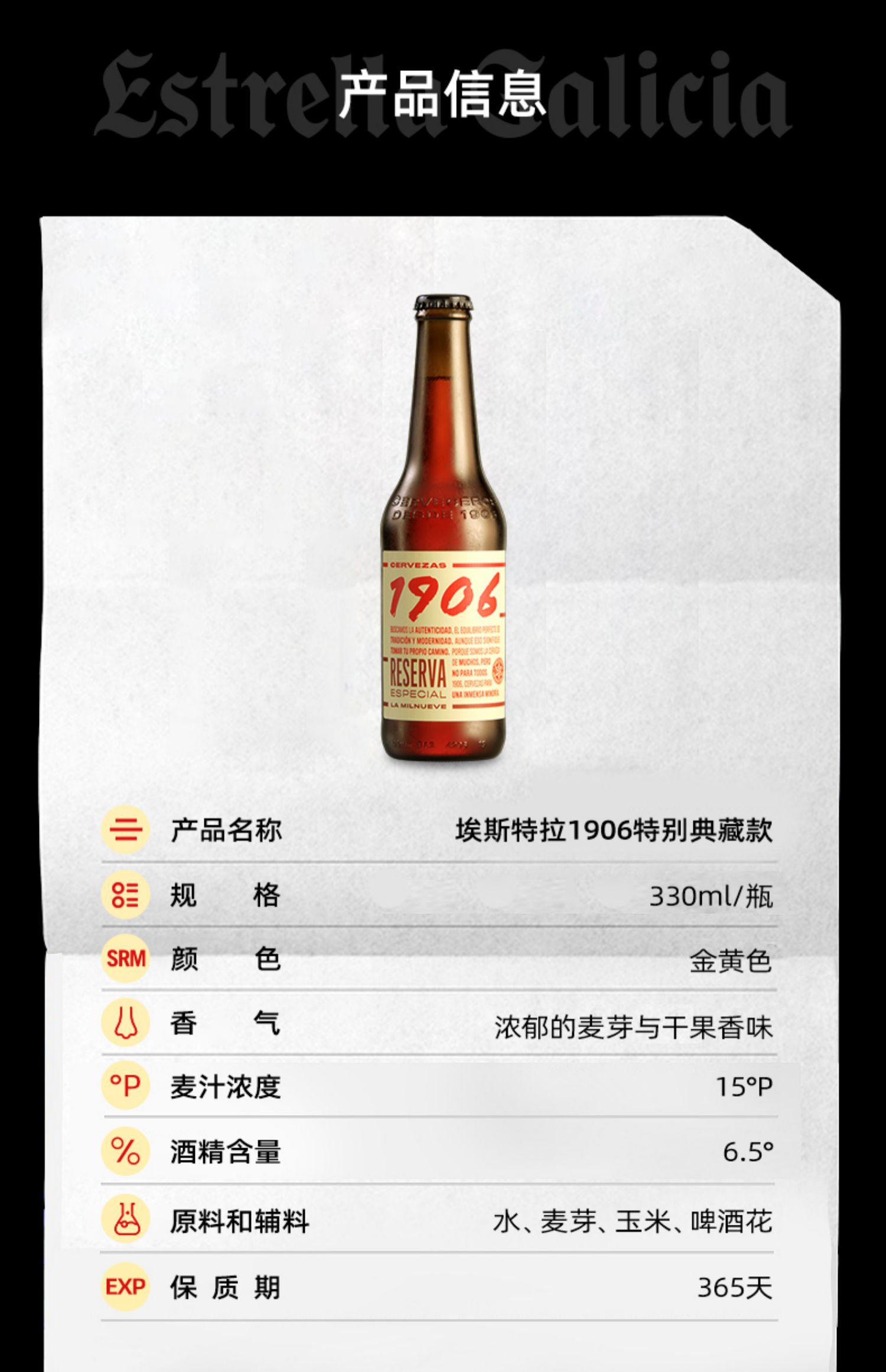 【1906系列】埃斯特拉西班牙原裝進口精釀啤酒330ml*4瓶裝12瓶裝