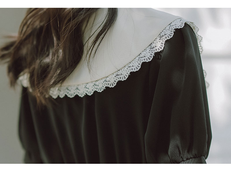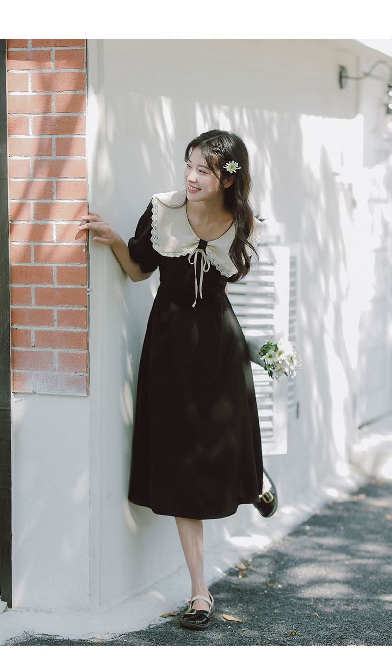 法式茶歇奶甜收腰甜美長袖少女裙子