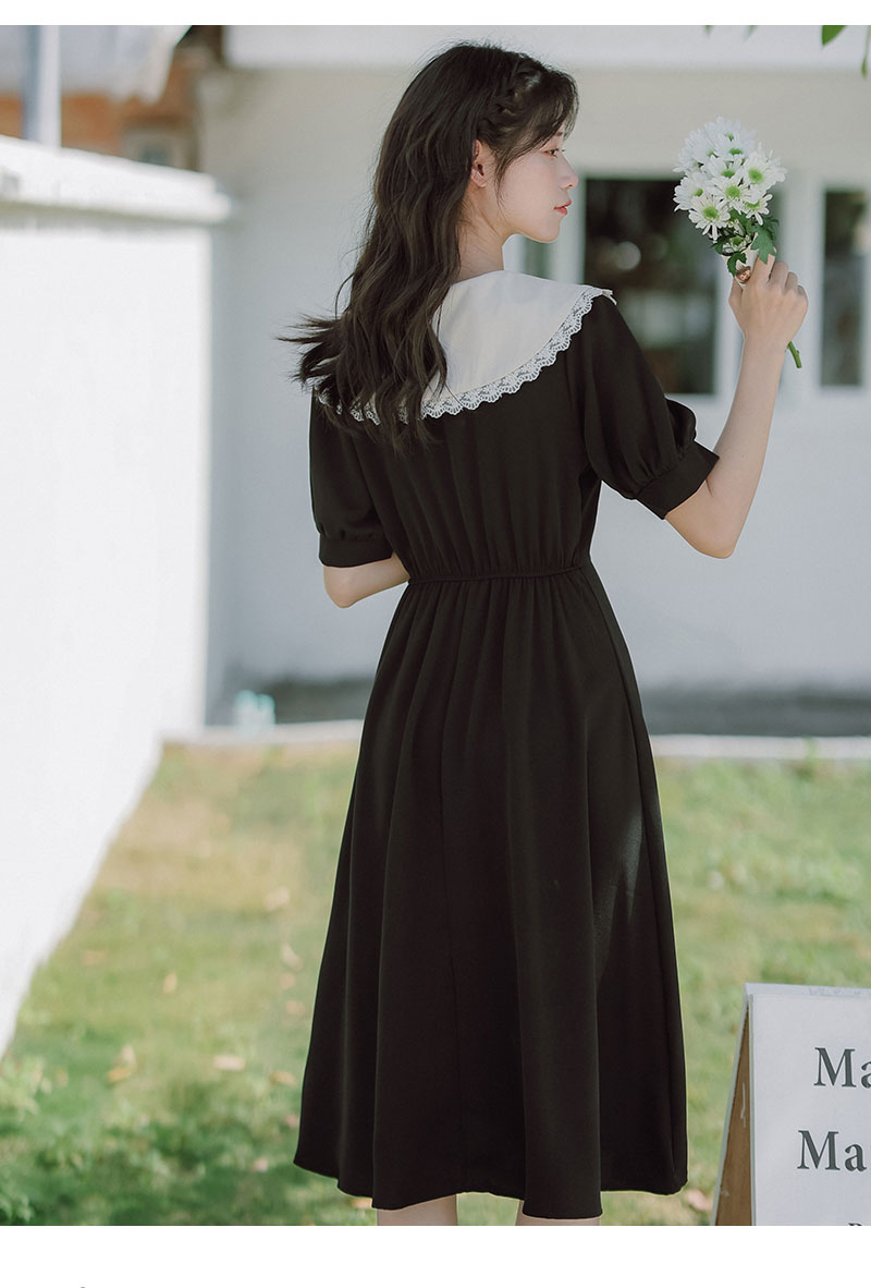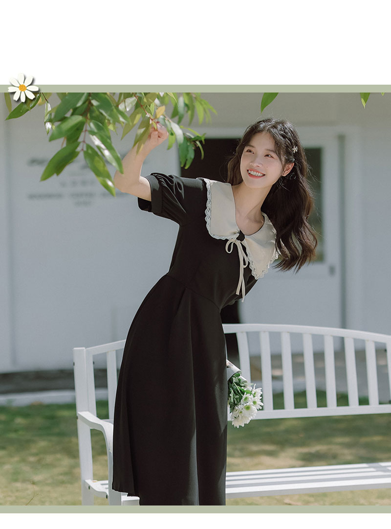 高級感小黑裙女夏季小個子法式復古赫本風收腰黑色連衣裙小眾設計